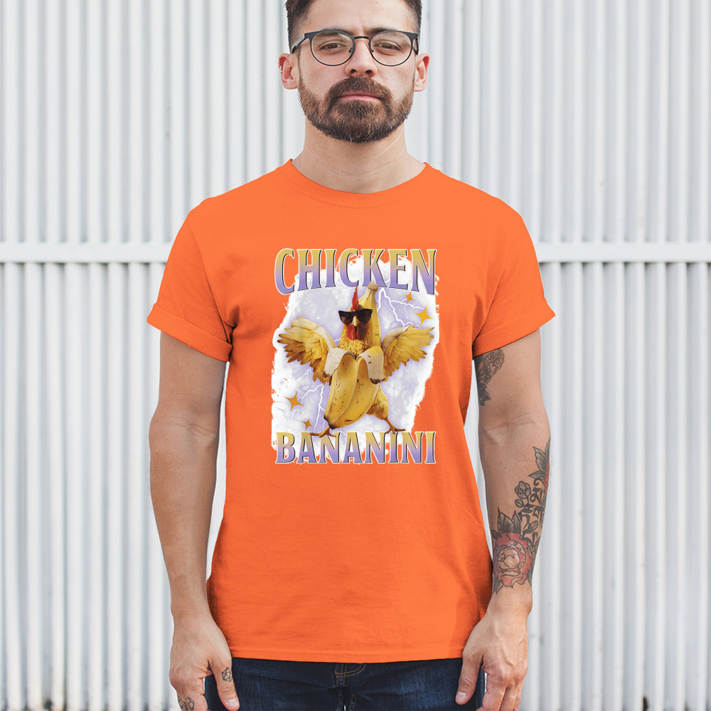 Chicken Bananini is meme absurdity with extra peel. Featuring a chicken emerging from a banana and rocking shades, this design blends cursed-core fashion, viral animal humor, Gen Z brainrot, and TikTok-style chaos. A must-have for fans of ironic mashups, surreal creatures, and internet-fueled nonsense.