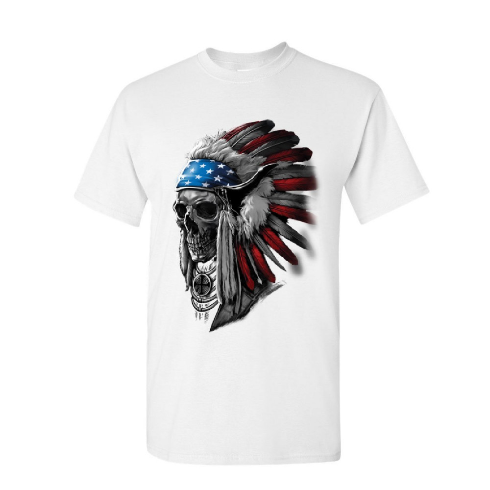 CHIEF SKULL HEADRESS t-shirt native american stars and stripes mens tee shirt white