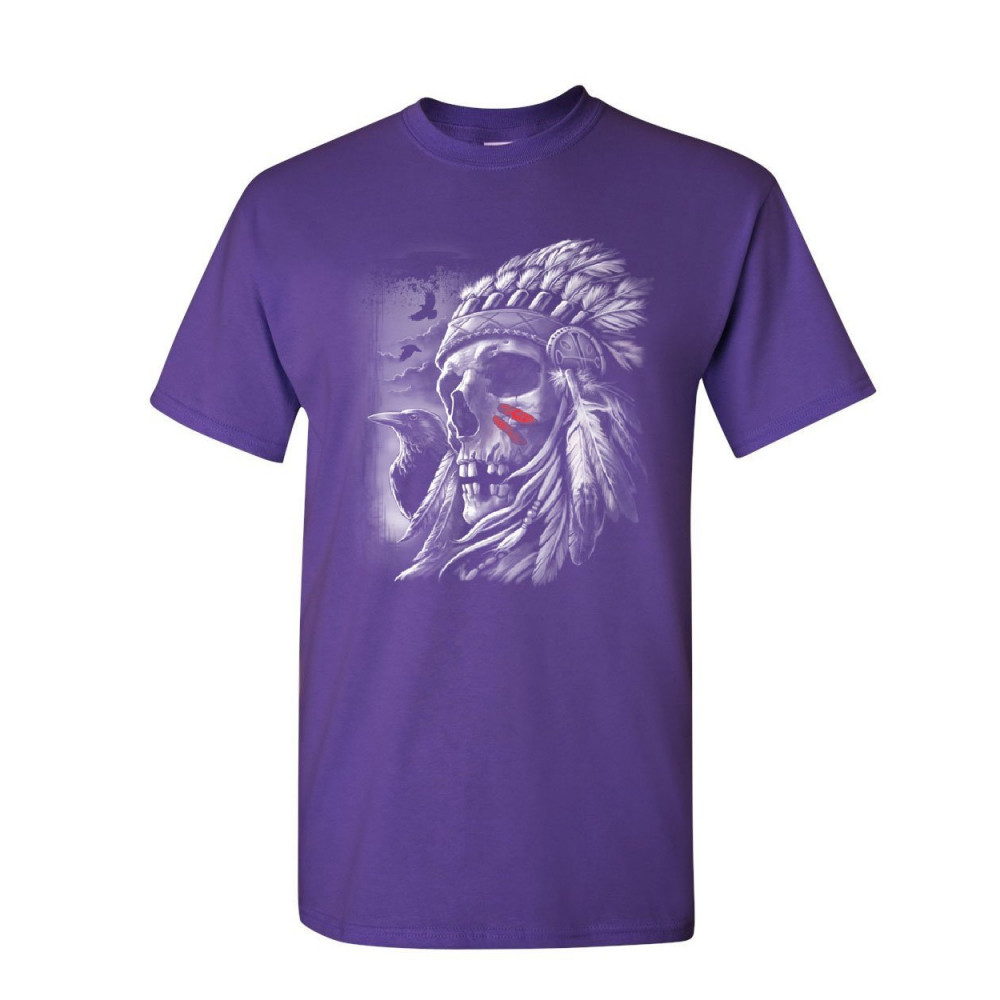 CHIEF SKULL WARBONNET HEADDRESS t-shirt native american heritage mens tee shirt purple