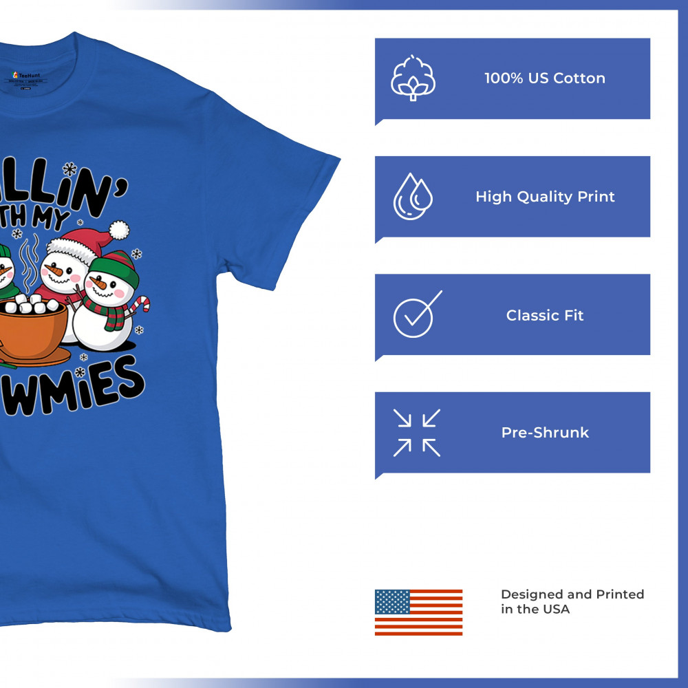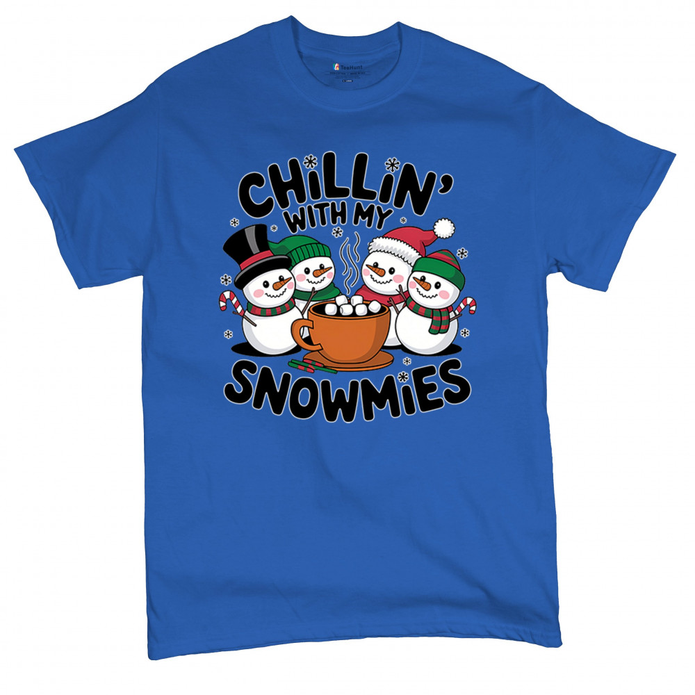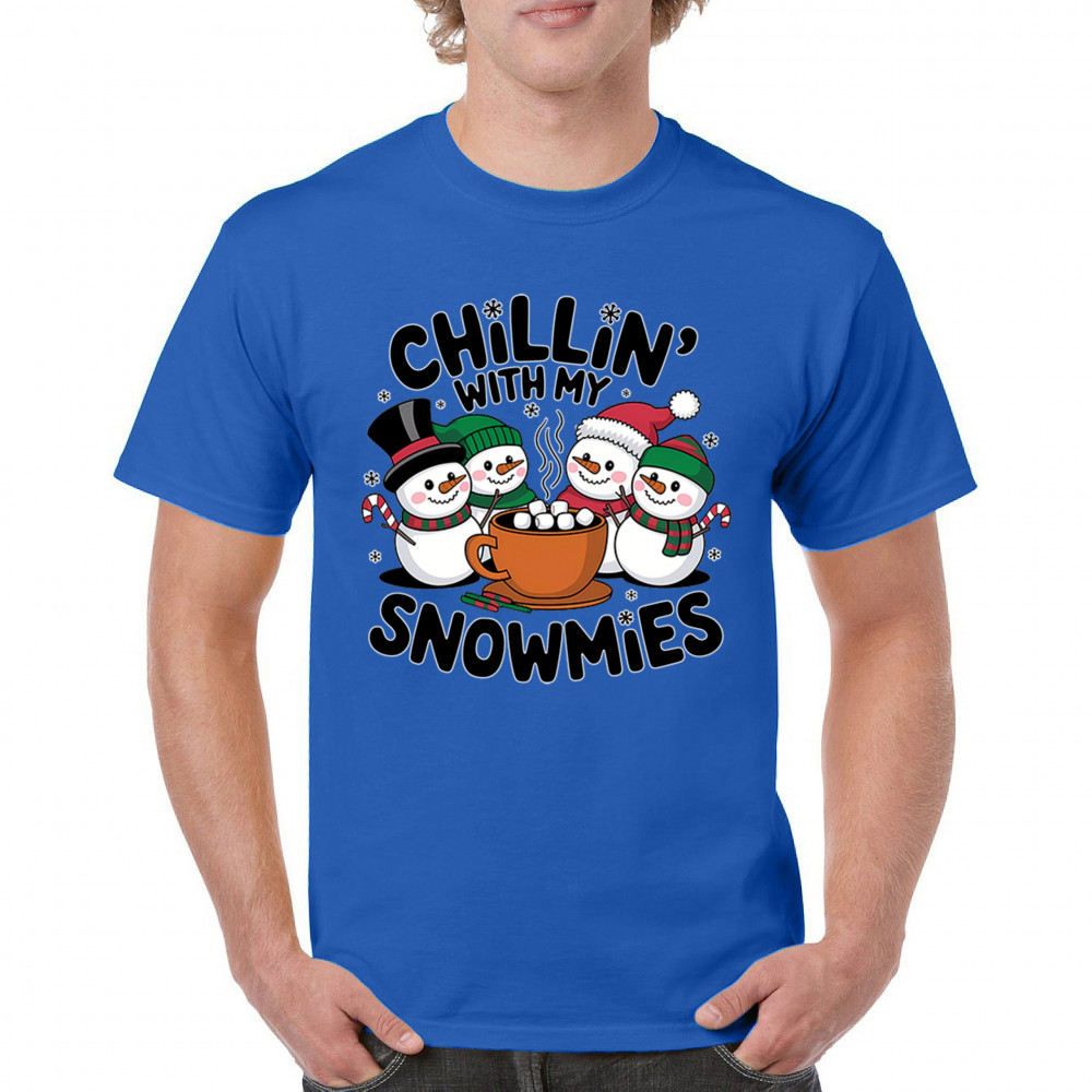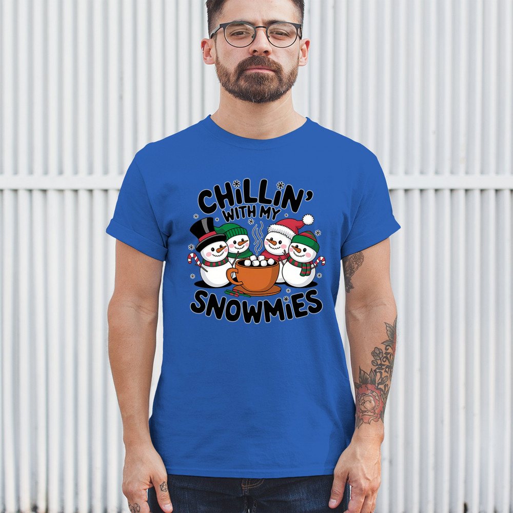A cute and cheerful winter design showing happy snowmen sharing hot cocoa, perfect for Christmas gatherings, holiday events, seasonal photos, white-elephant gifting, festive family nights, winter celebrations, cozy weekend vibes, and fans of playful holiday humor. A fun graphic for anyone who loves bright and friendly Christmas styles.