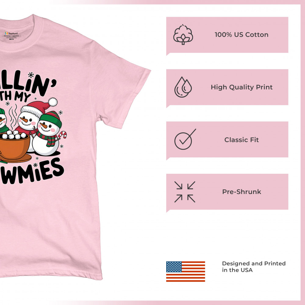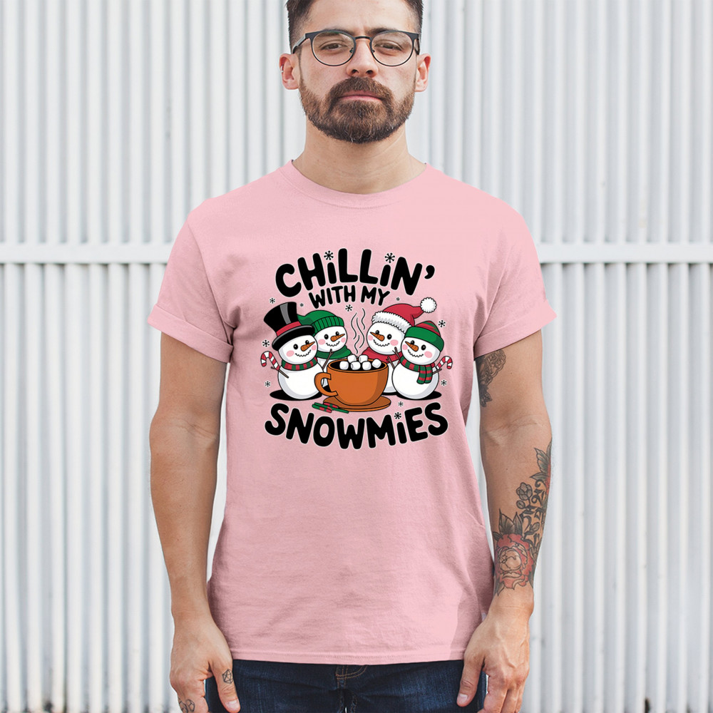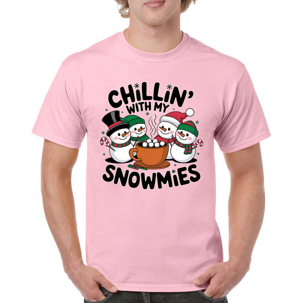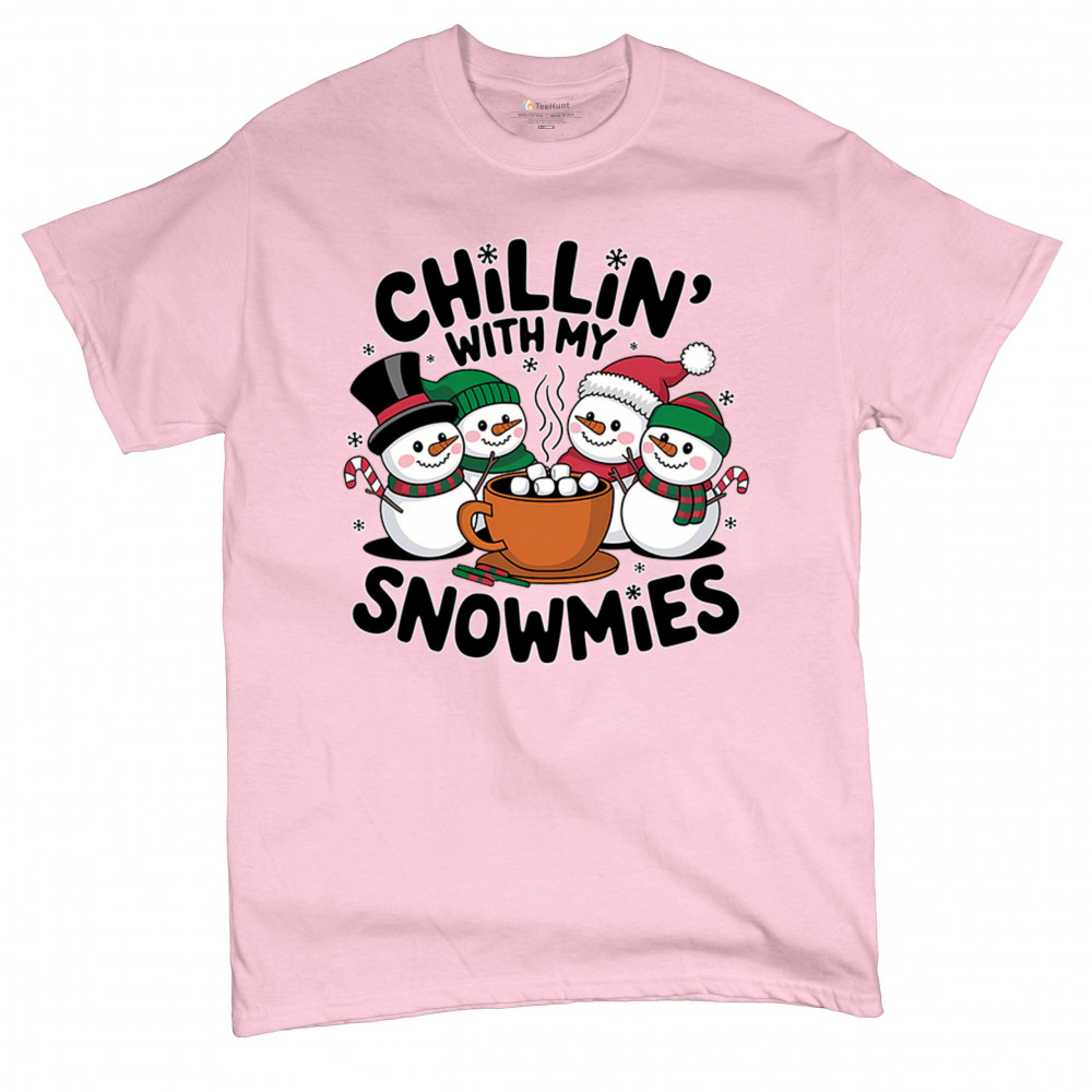 A cute and cheerful winter design showing happy snowmen sharing hot cocoa, perfect for Christmas gatherings, holiday events, seasonal photos, white-elephant gifting, festive family nights, winter celebrations, cozy weekend vibes, and fans of playful holiday humor. A fun graphic for anyone who loves bright and friendly Christmas styles.