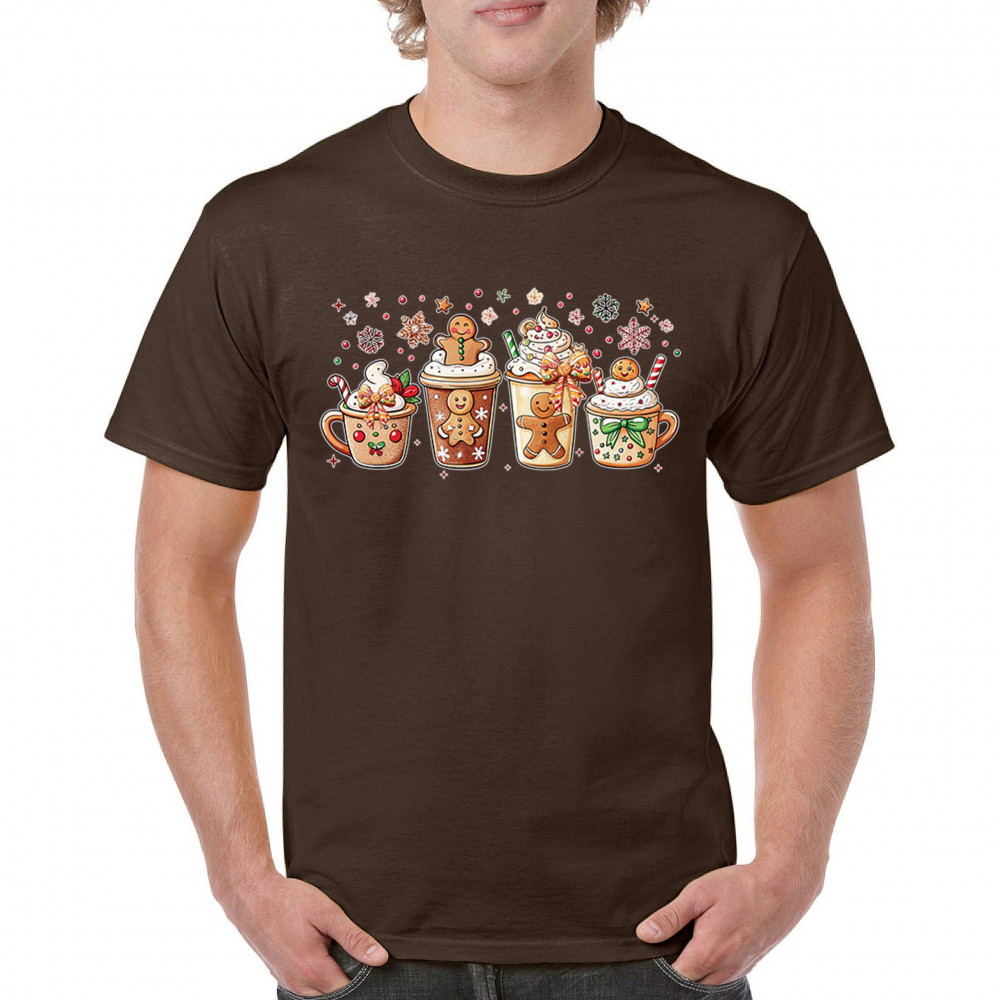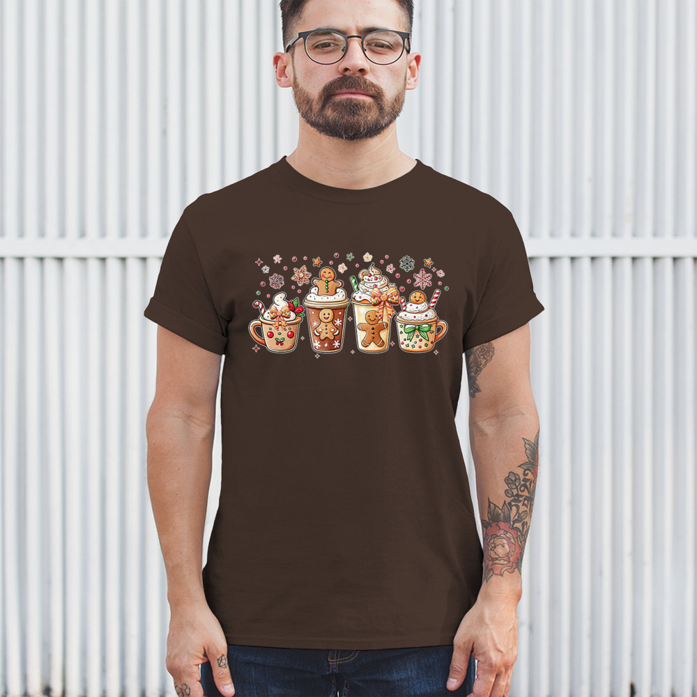 This cute Christmas drink design showcases gingerbread mugs, whipped cream, candy canes, sprinkles, and festive decorations for a warm winter aesthetic. Perfect for cocoa lovers, coffee fans, bakers, cozy holiday nights, gift exchanges, Christmas morning vibes, seasonal parties, and anyone who loves adorable dessert-inspired holiday art.