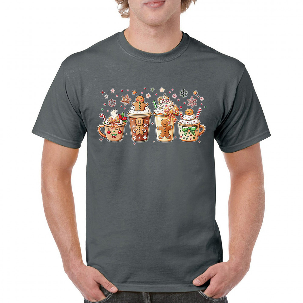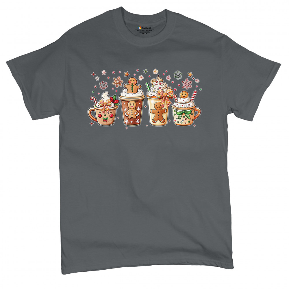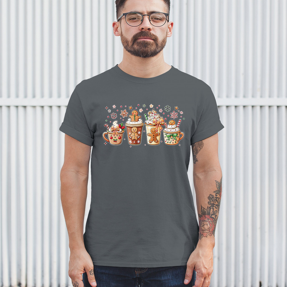 This cute Christmas drink design showcases gingerbread mugs, whipped cream, candy canes, sprinkles, and festive decorations for a warm winter aesthetic. Perfect for cocoa lovers, coffee fans, bakers, cozy holiday nights, gift exchanges, Christmas morning vibes, seasonal parties, and anyone who loves adorable dessert-inspired holiday art.