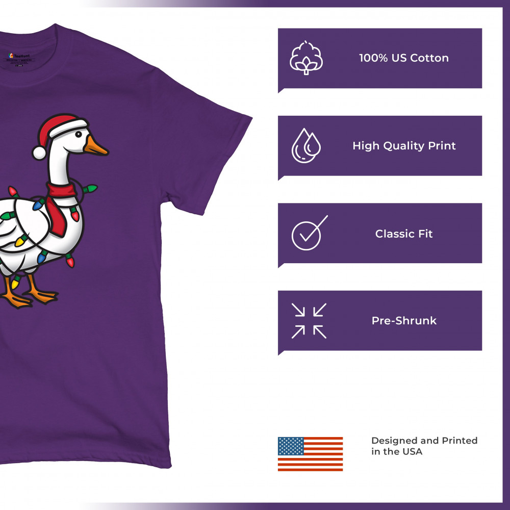 This festive Christmas goose wrapped in bright holiday lights delivers a quirky mix of humor and seasonal charm. Perfect for white elephant exchanges, Secret Santa gifting, or anyone who loves fun holiday graphics. A standout design that blends playful animal humor, cheerful color, and unmistakable Christmas spirit for the entire season.