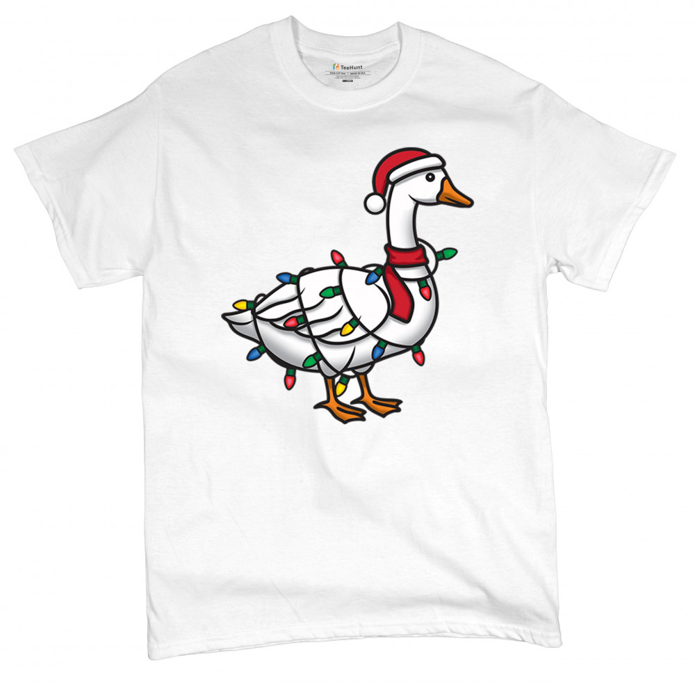 Funny Christmas goose wrapped in lights with festive humor, perfect for holiday gifting, white elephant exchanges, and cheerful seasonal style.
