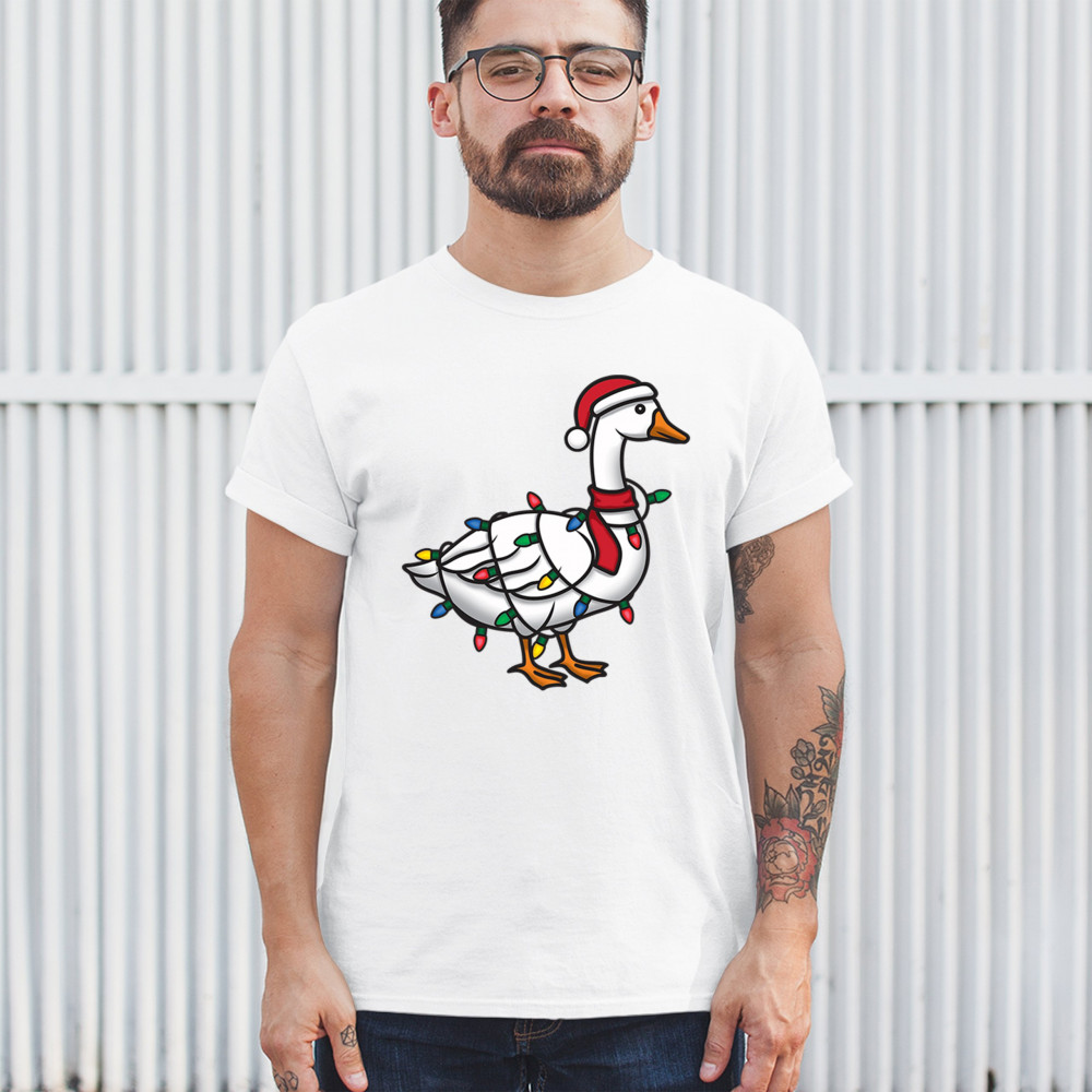This festive Christmas goose wrapped in bright holiday lights delivers a quirky mix of humor and seasonal charm. Perfect for white elephant exchanges, Secret Santa gifting, or anyone who loves fun holiday graphics. A standout design that blends playful animal humor, cheerful color, and unmistakable Christmas spirit for the entire season.