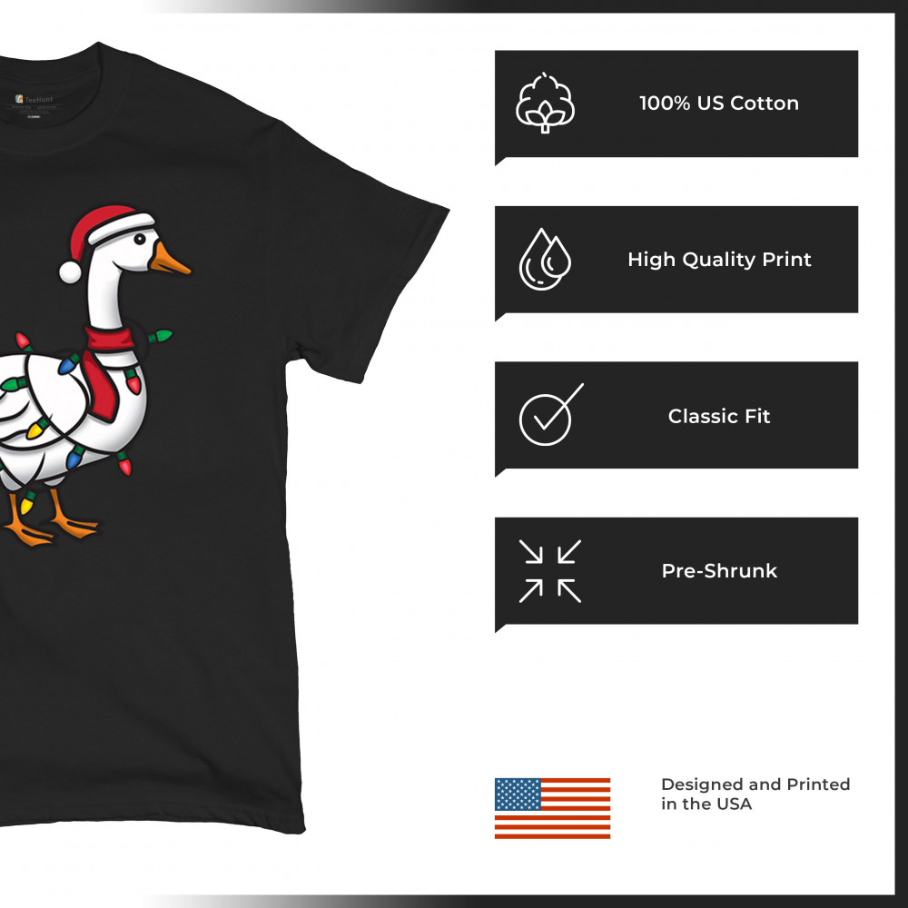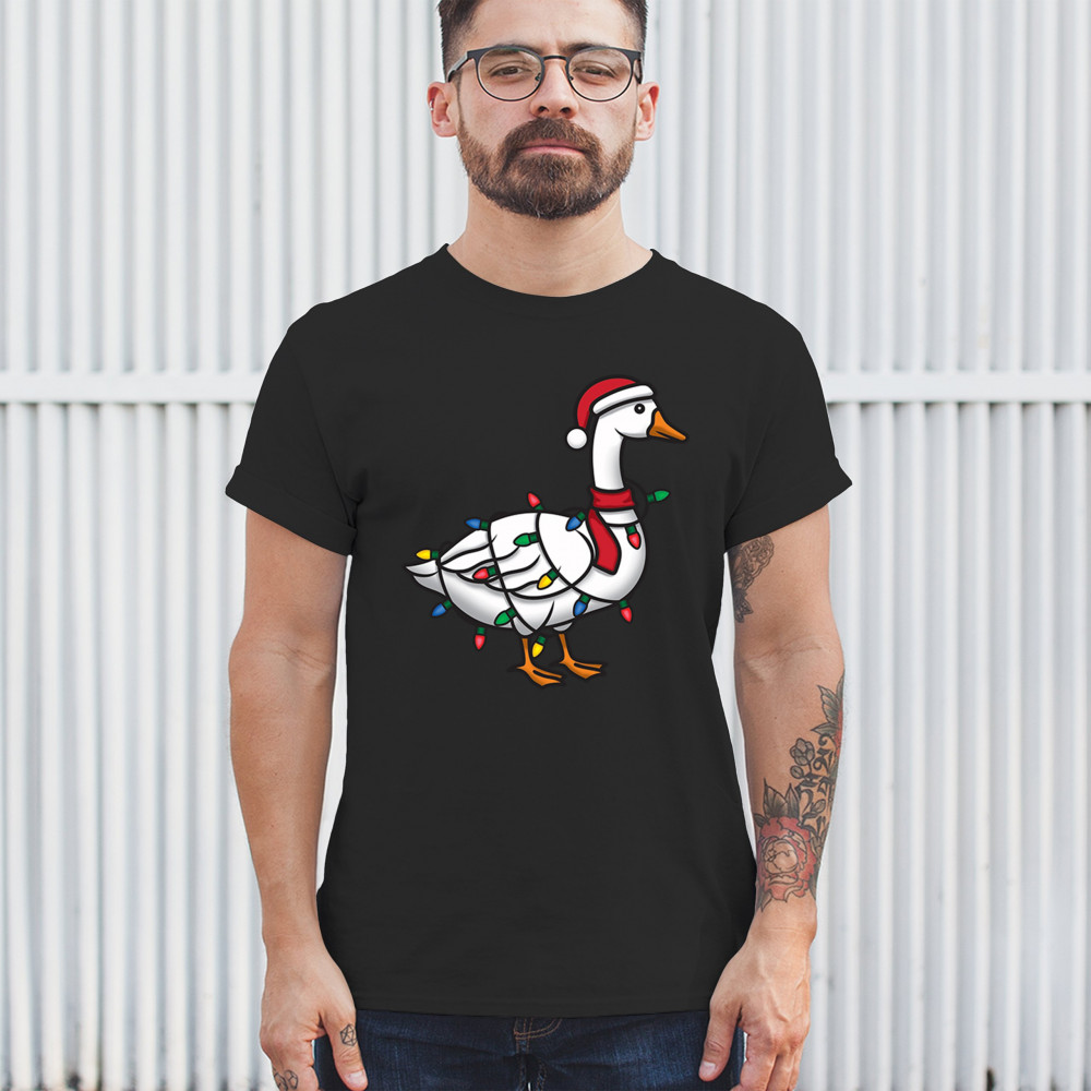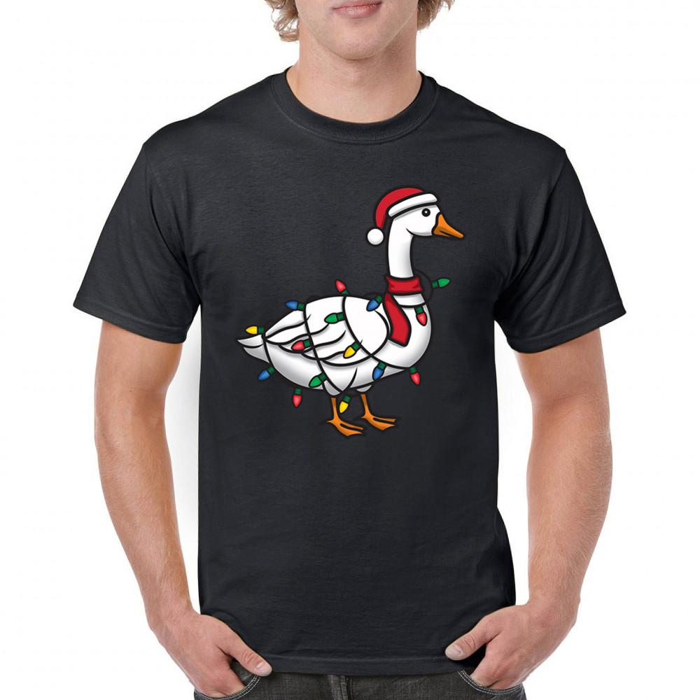 CHRISTMAS GOOSE t-shirt jolly xmas lights secret santa gift idea men's tee black