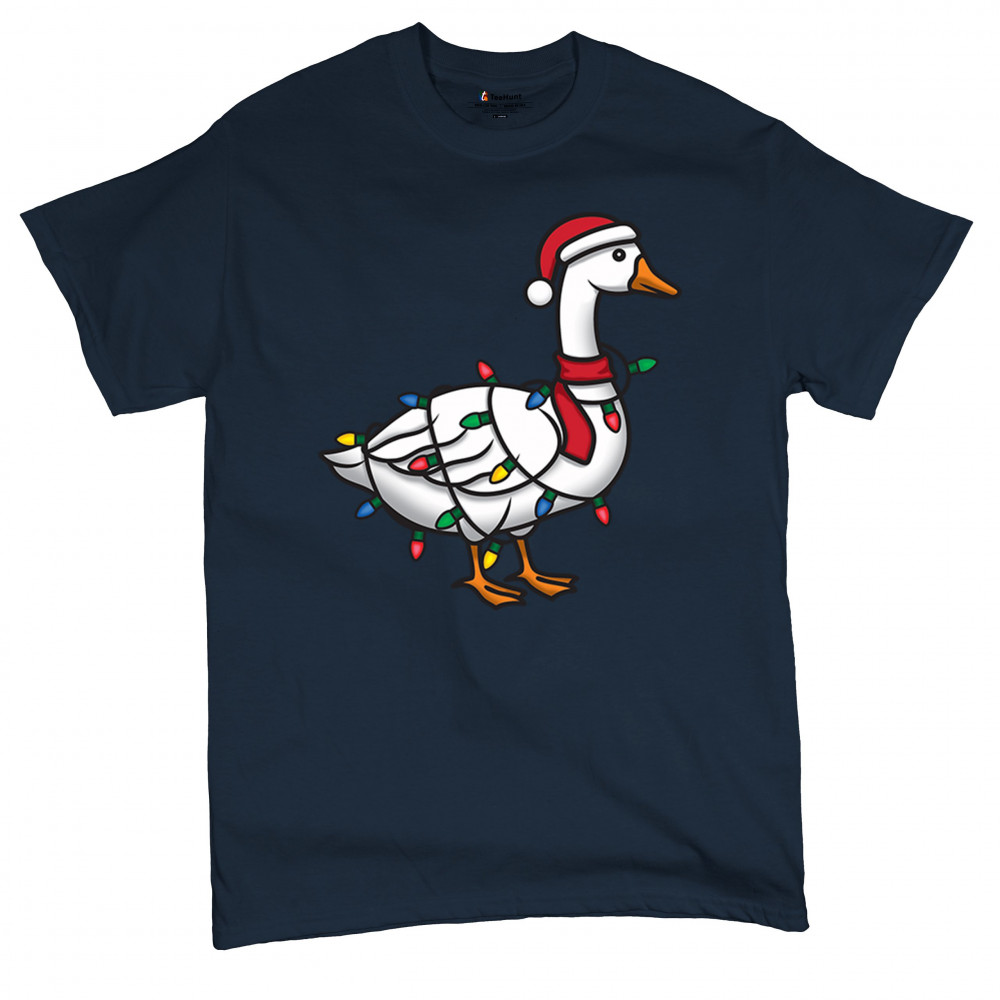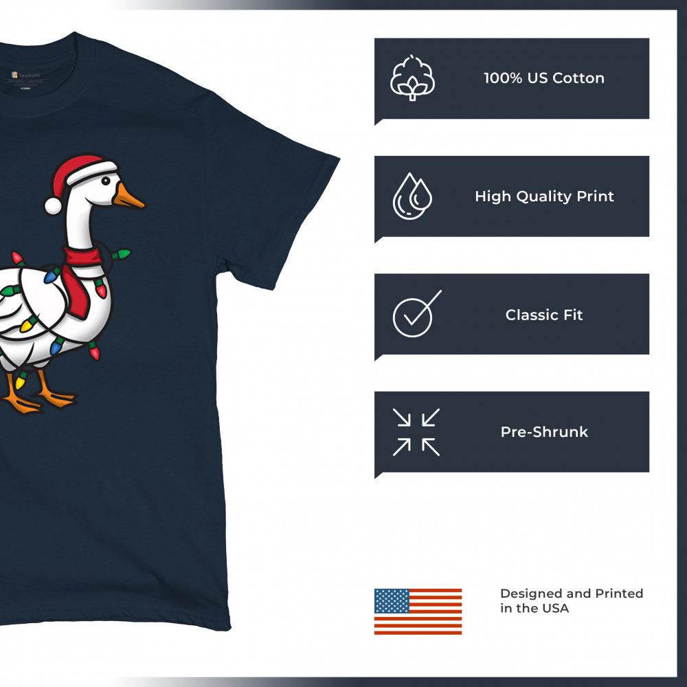 Funny Christmas goose wrapped in lights with festive humor, perfect for holiday gifting, white elephant exchanges, and cheerful seasonal style.