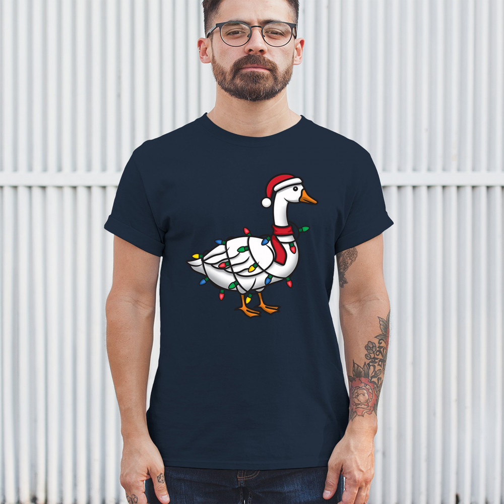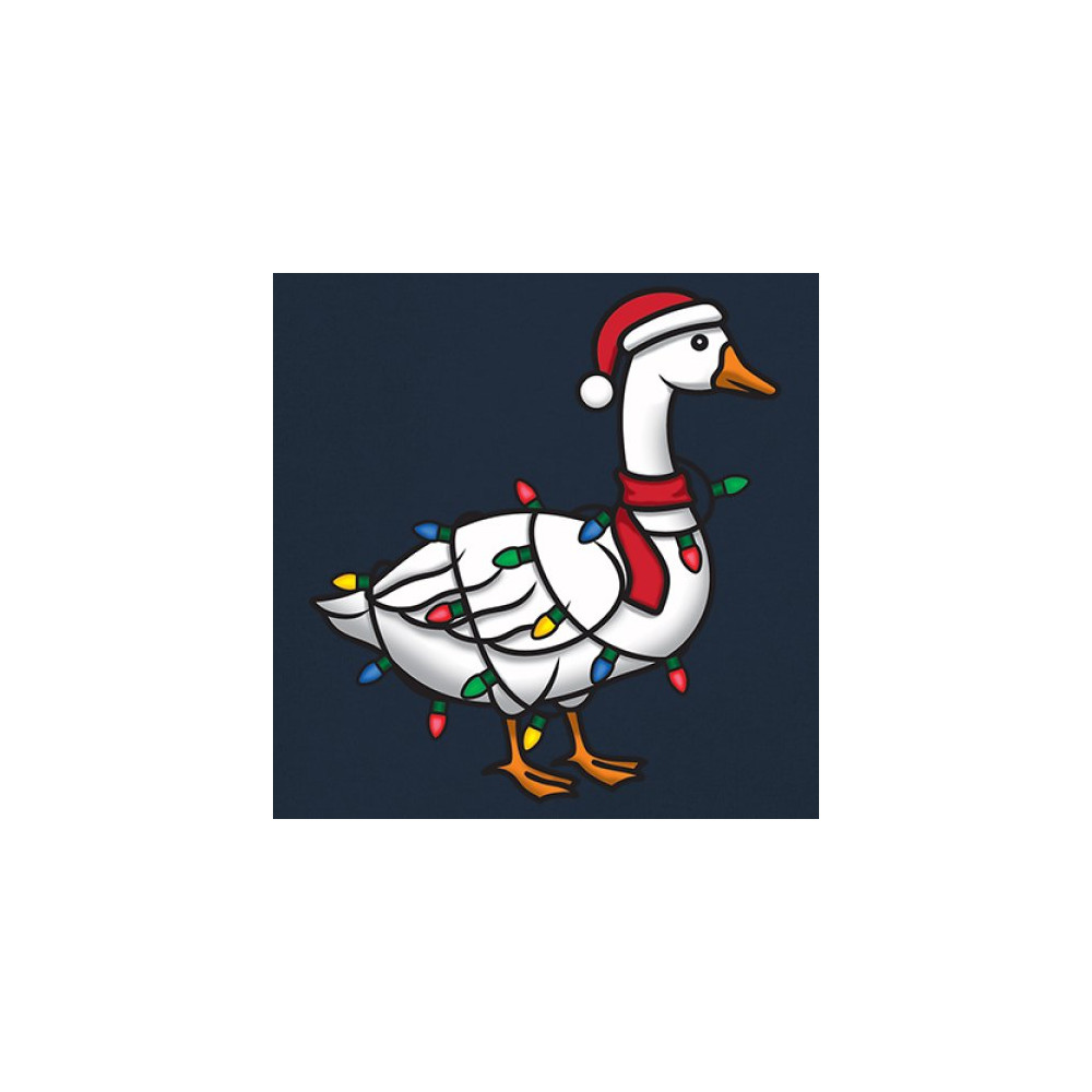 This festive Christmas goose wrapped in bright holiday lights delivers a quirky mix of humor and seasonal charm. Perfect for white elephant exchanges, Secret Santa gifting, or anyone who loves fun holiday graphics. A standout design that blends playful animal humor, cheerful color, and unmistakable Christmas spirit for the entire season.
