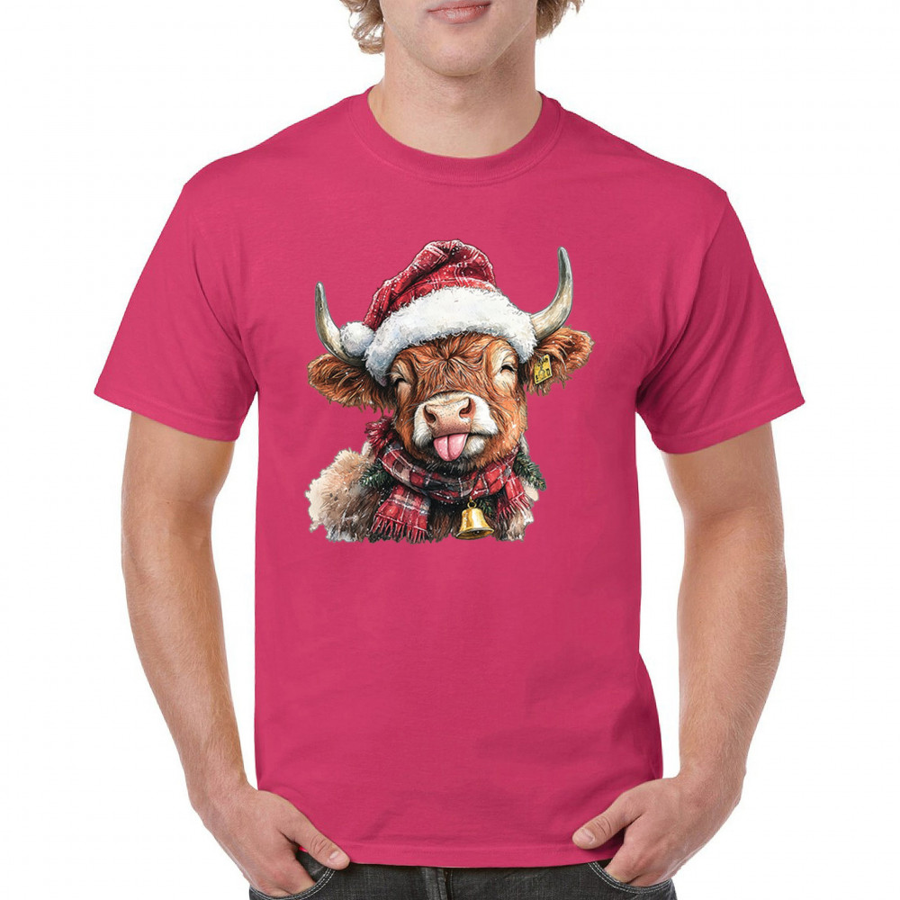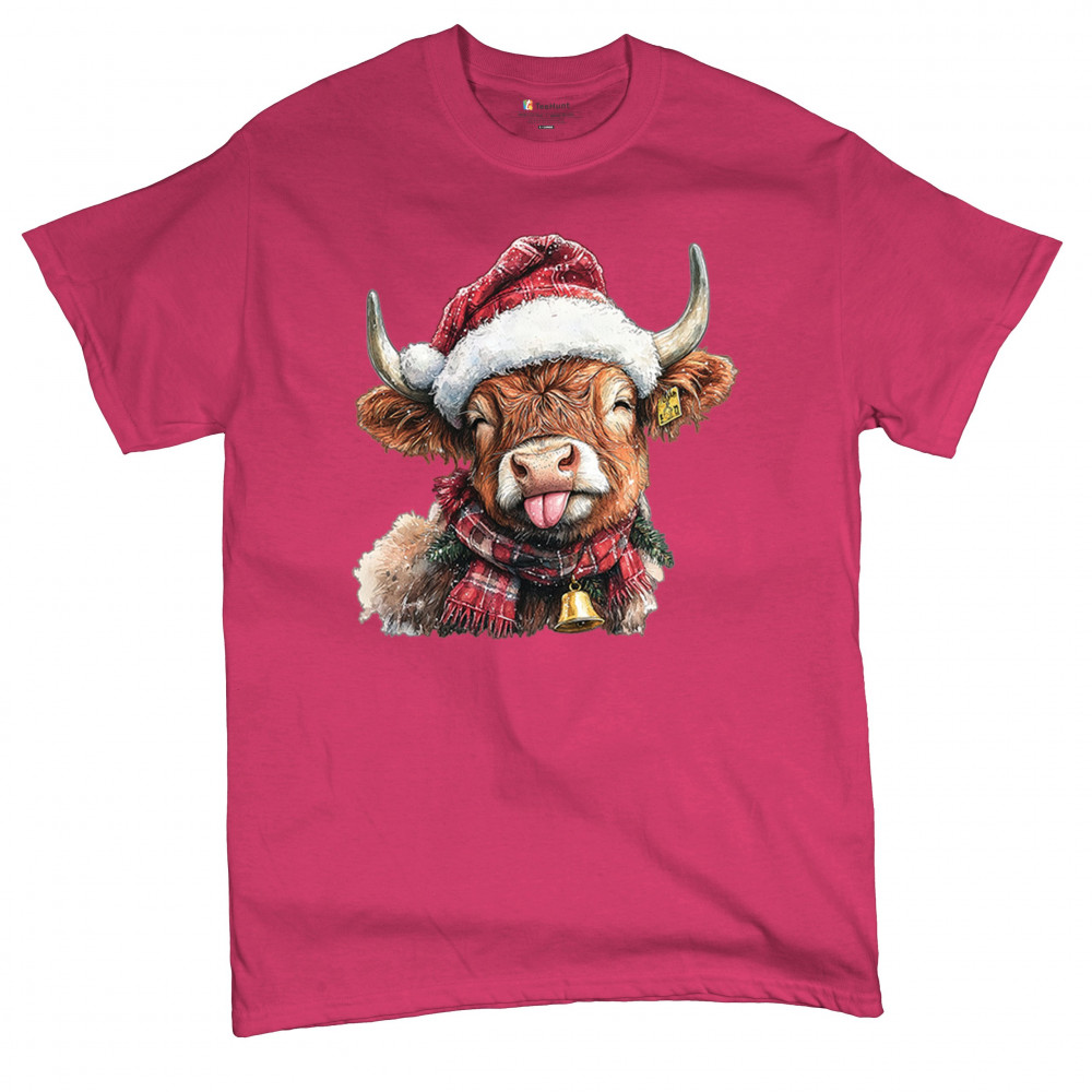 Christmas Highland Cow shirt – rustic holiday design with Santa hat cow, farmhouse holiday humor, country Christmas vibes, and festive livestock art.