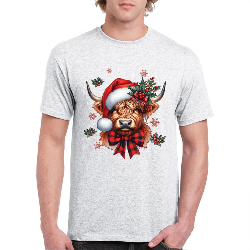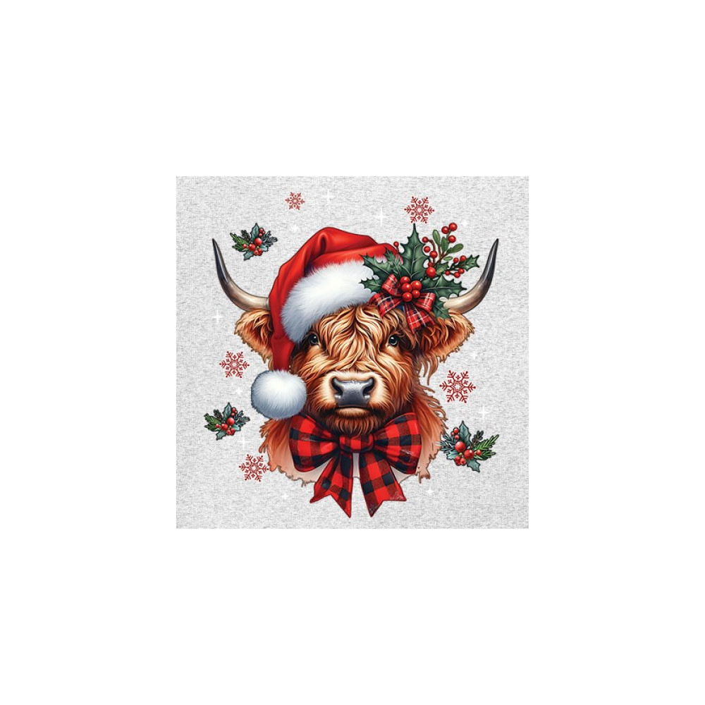 This adorable Highland cow Christmas design blends farmhouse charm, rustic holiday style, and classic winter décor. With a Santa hat, plaid bow, holly, and snowflakes, it delivers warm festive energy that fits perfectly with country décor, woodland themes, cozy farm aesthetics, holiday gifting, and seasonal celebrations. Ideal for fans of cute animals and cheerful Christmas graphics.c