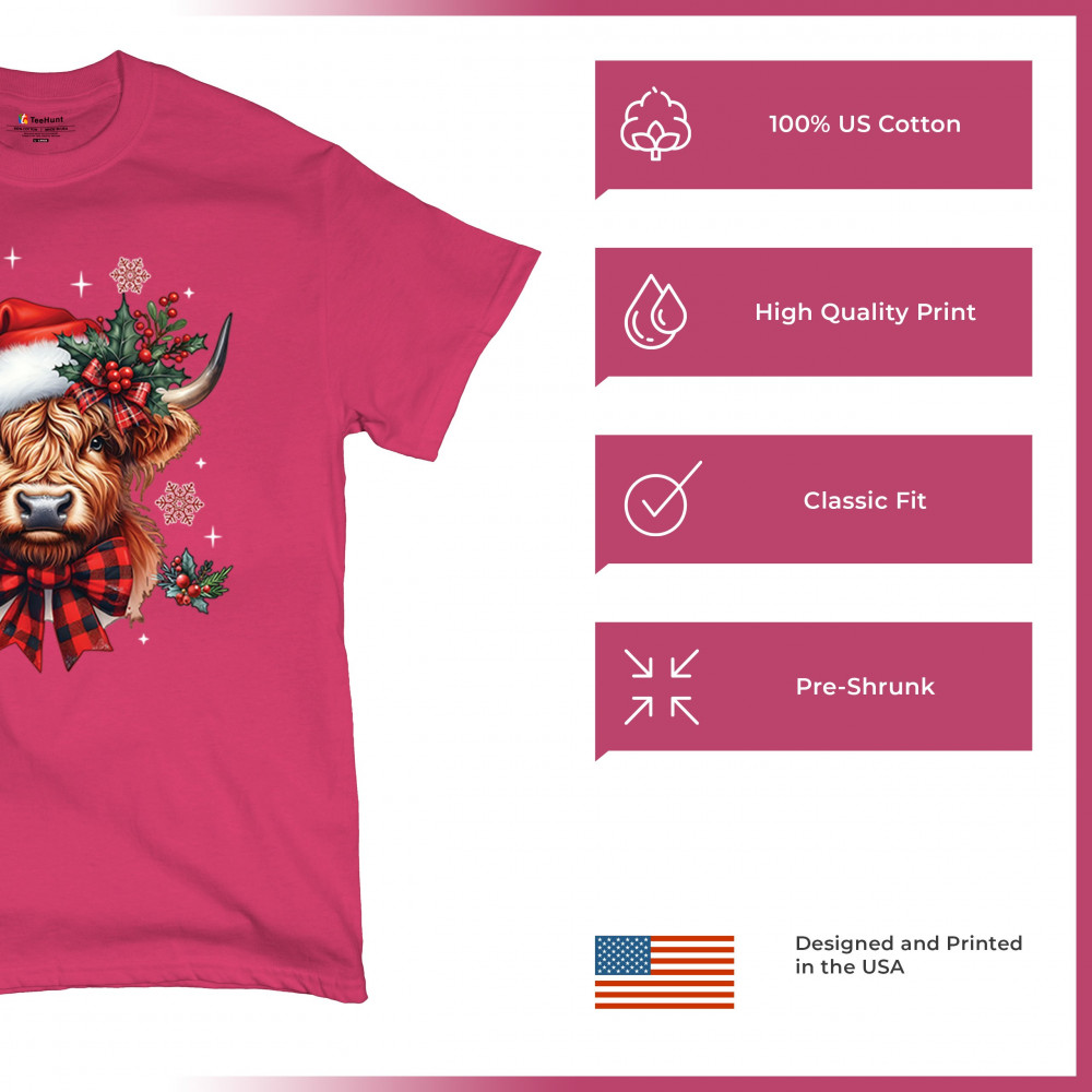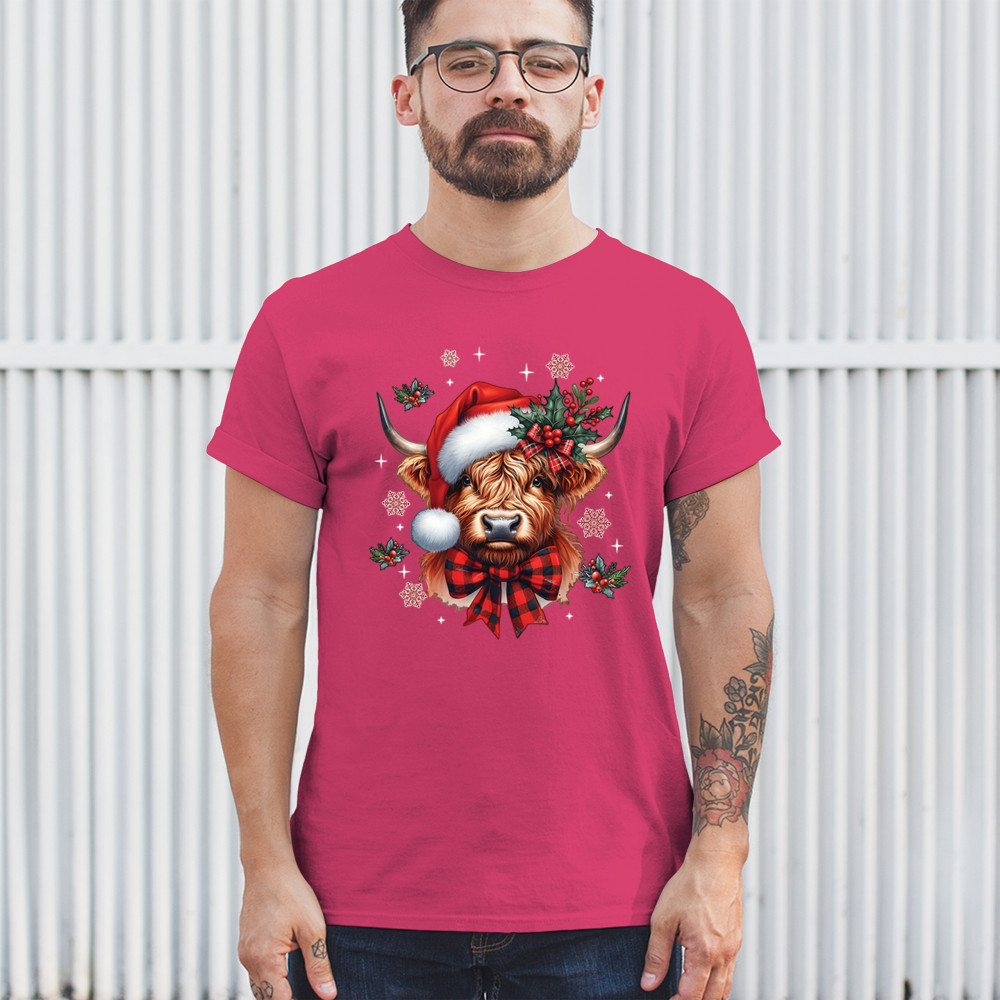 This adorable Highland cow Christmas design blends farmhouse charm, rustic holiday style, and classic winter décor. With a Santa hat, plaid bow, holly, and snowflakes, it delivers warm festive energy that fits perfectly with country décor, woodland themes, cozy farm aesthetics, holiday gifting, and seasonal celebrations. Ideal for fans of cute animals and cheerful Christmas graphics.c
