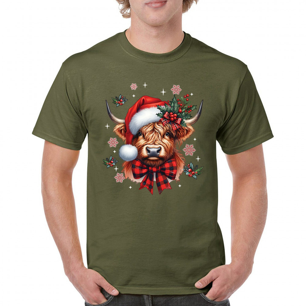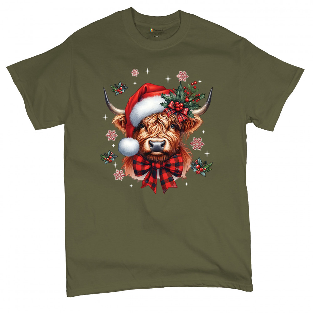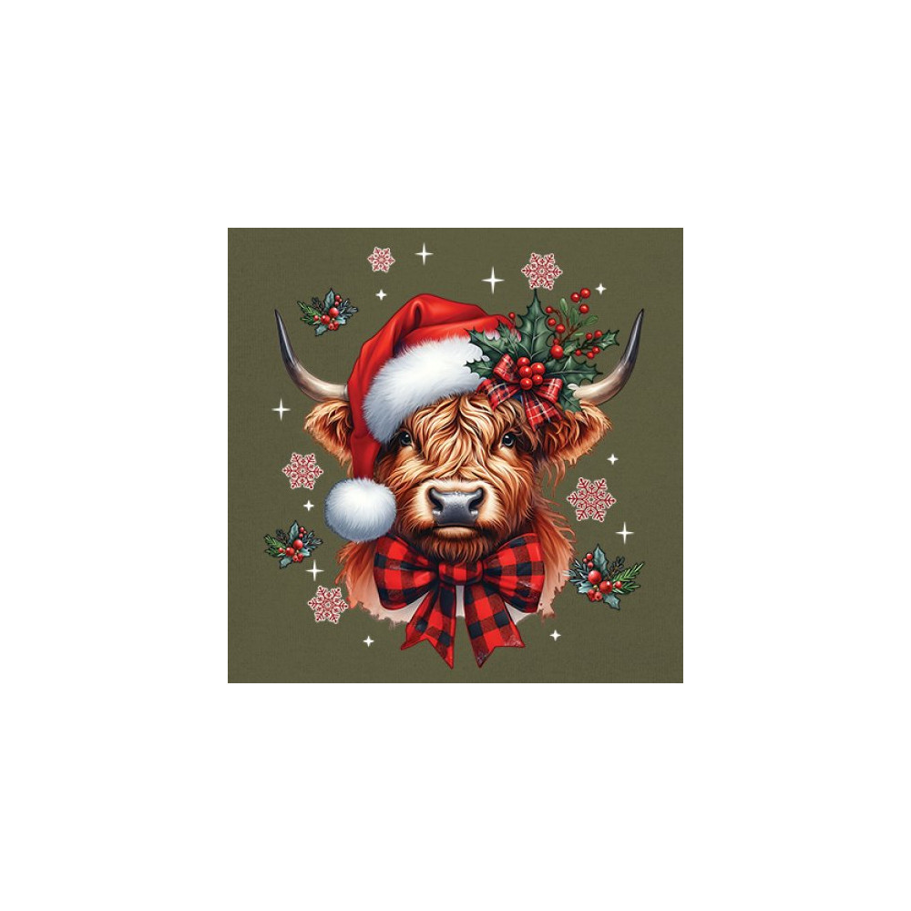 This adorable Highland cow Christmas design blends farmhouse charm, rustic holiday style, and classic winter décor. With a Santa hat, plaid bow, holly, and snowflakes, it delivers warm festive energy that fits perfectly with country décor, woodland themes, cozy farm aesthetics, holiday gifting, and seasonal celebrations. Ideal for fans of cute animals and cheerful Christmas graphics.c