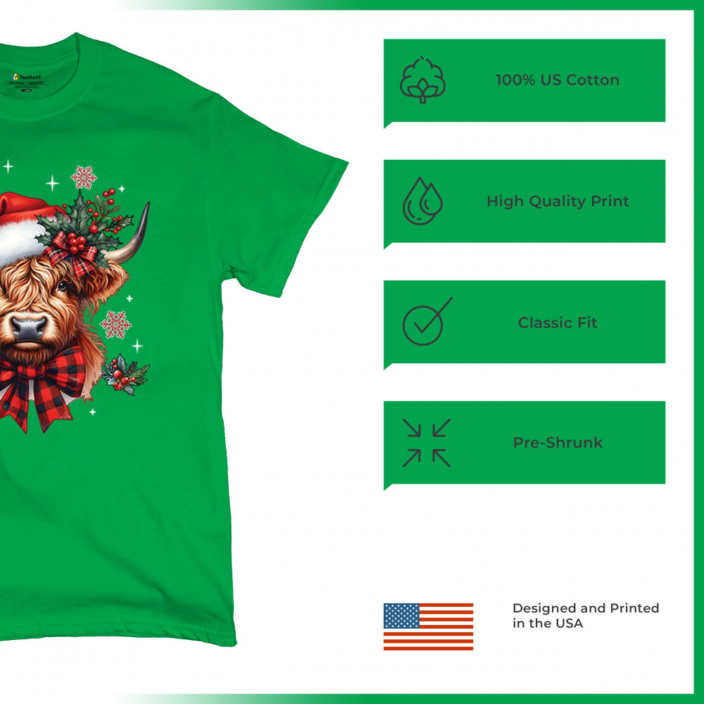 This adorable Highland cow Christmas design blends farmhouse charm, rustic holiday style, and classic winter décor. With a Santa hat, plaid bow, holly, and snowflakes, it delivers warm festive energy that fits perfectly with country décor, woodland themes, cozy farm aesthetics, holiday gifting, and seasonal celebrations. Ideal for fans of cute animals and cheerful Christmas graphics.c