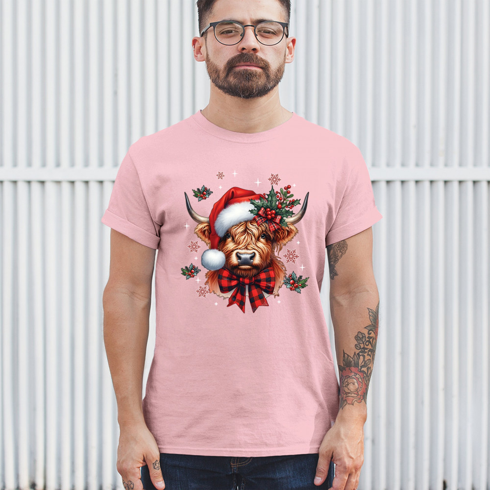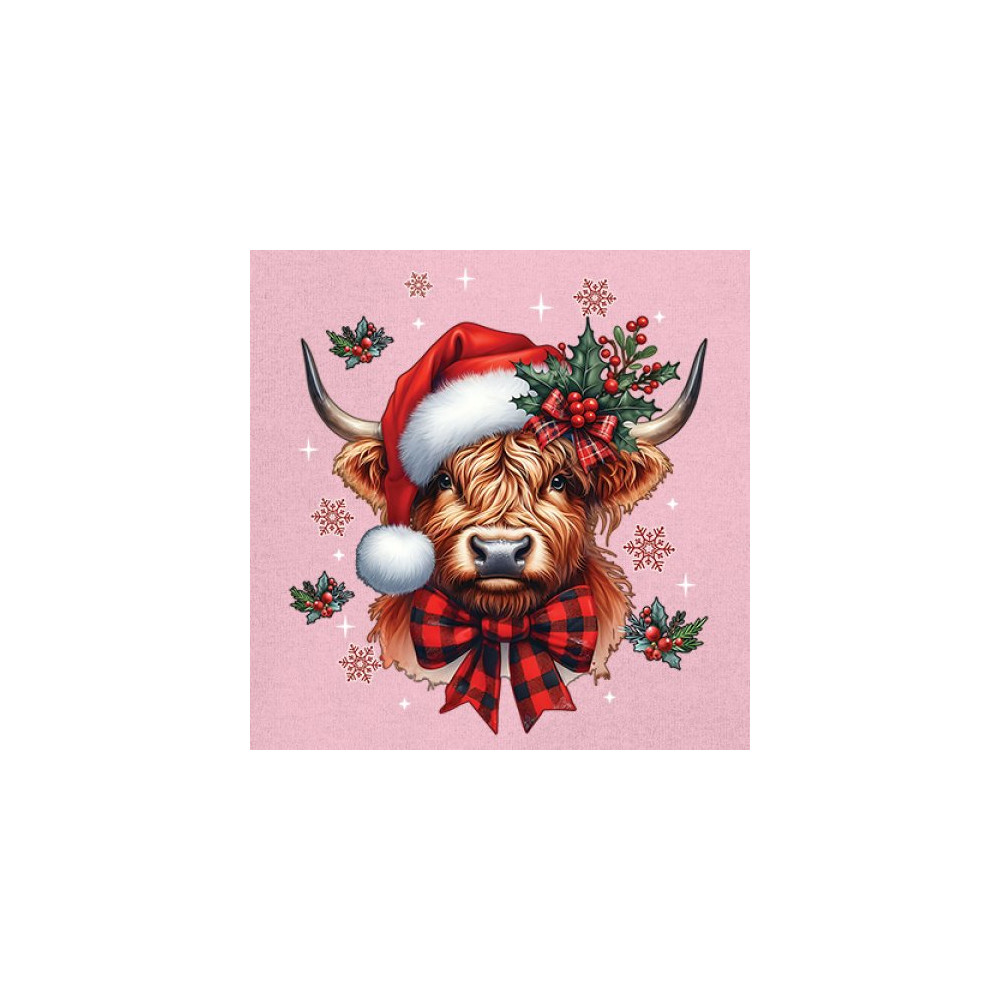 This adorable Highland cow Christmas design blends farmhouse charm, rustic holiday style, and classic winter décor. With a Santa hat, plaid bow, holly, and snowflakes, it delivers warm festive energy that fits perfectly with country décor, woodland themes, cozy farm aesthetics, holiday gifting, and seasonal celebrations. Ideal for fans of cute animals and cheerful Christmas graphics.c