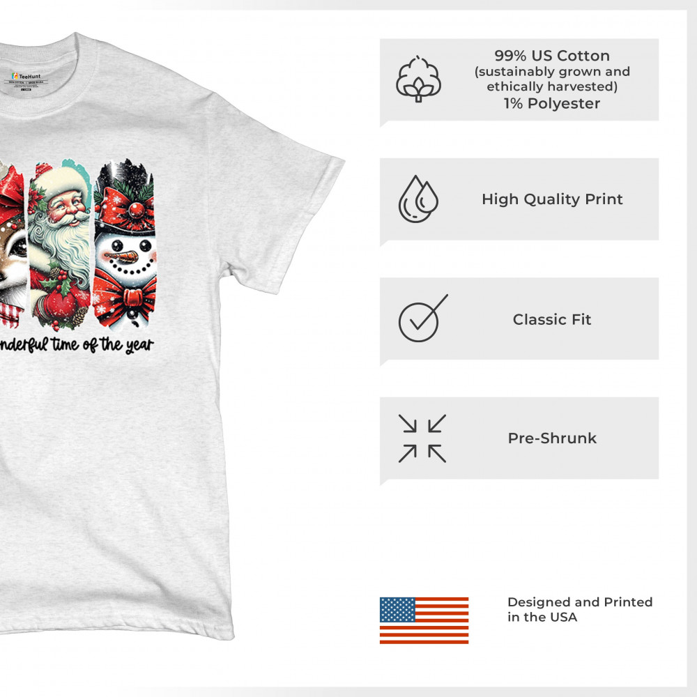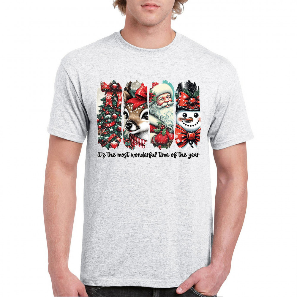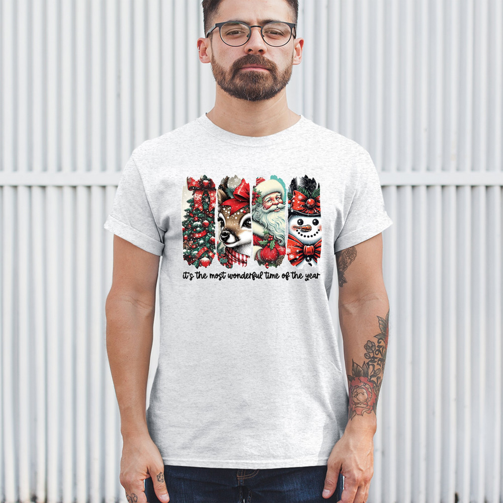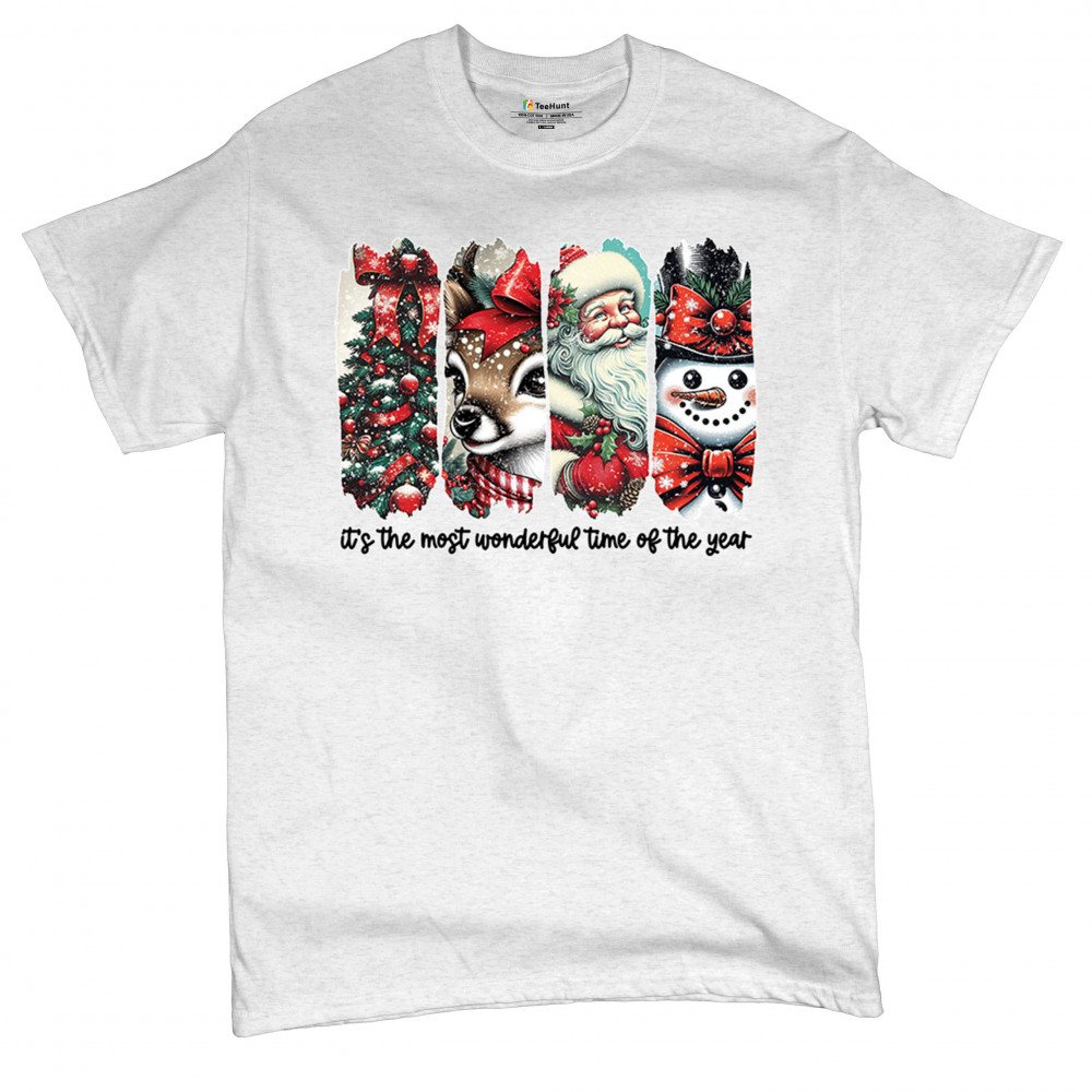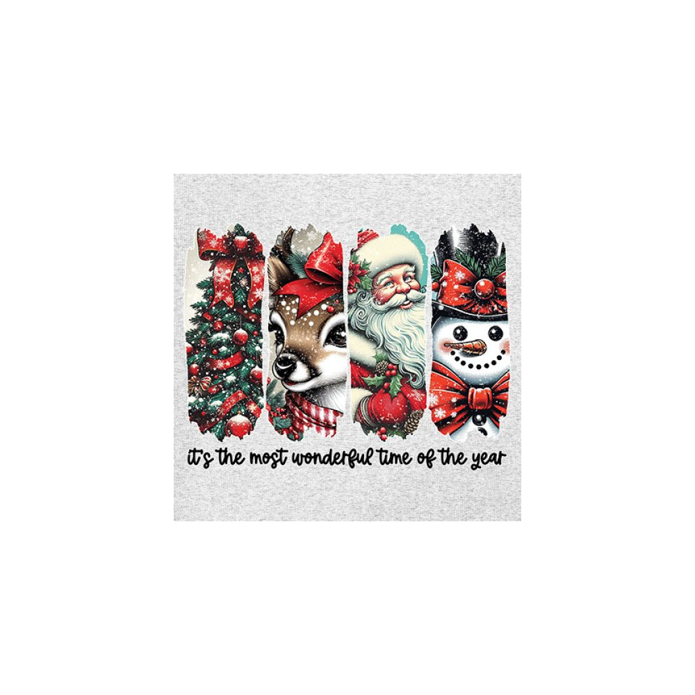 This Christmas design blends a decorated tree, sweet reindeer, vintage Santa, and a bright snowman for a classic seasonal look. Ideal for holiday lovers, winter gatherings, festive parties, gift exchanges, Christmas morning, and anyone who enjoys cheerful, nostalgic holiday art. A warm, eye-catching design that brings out the magic of the season.