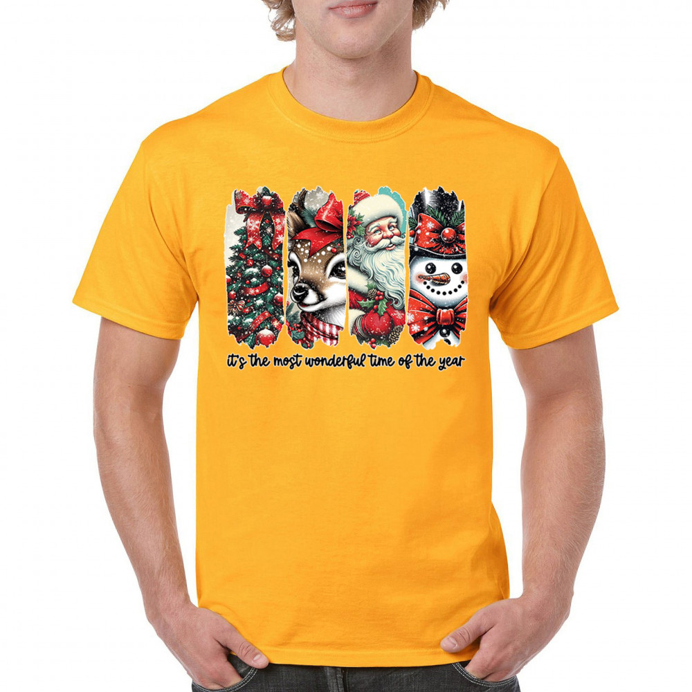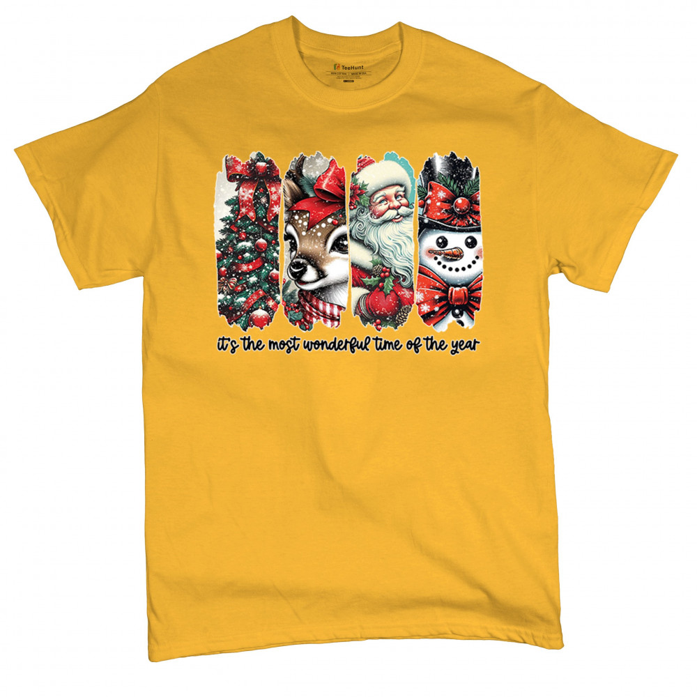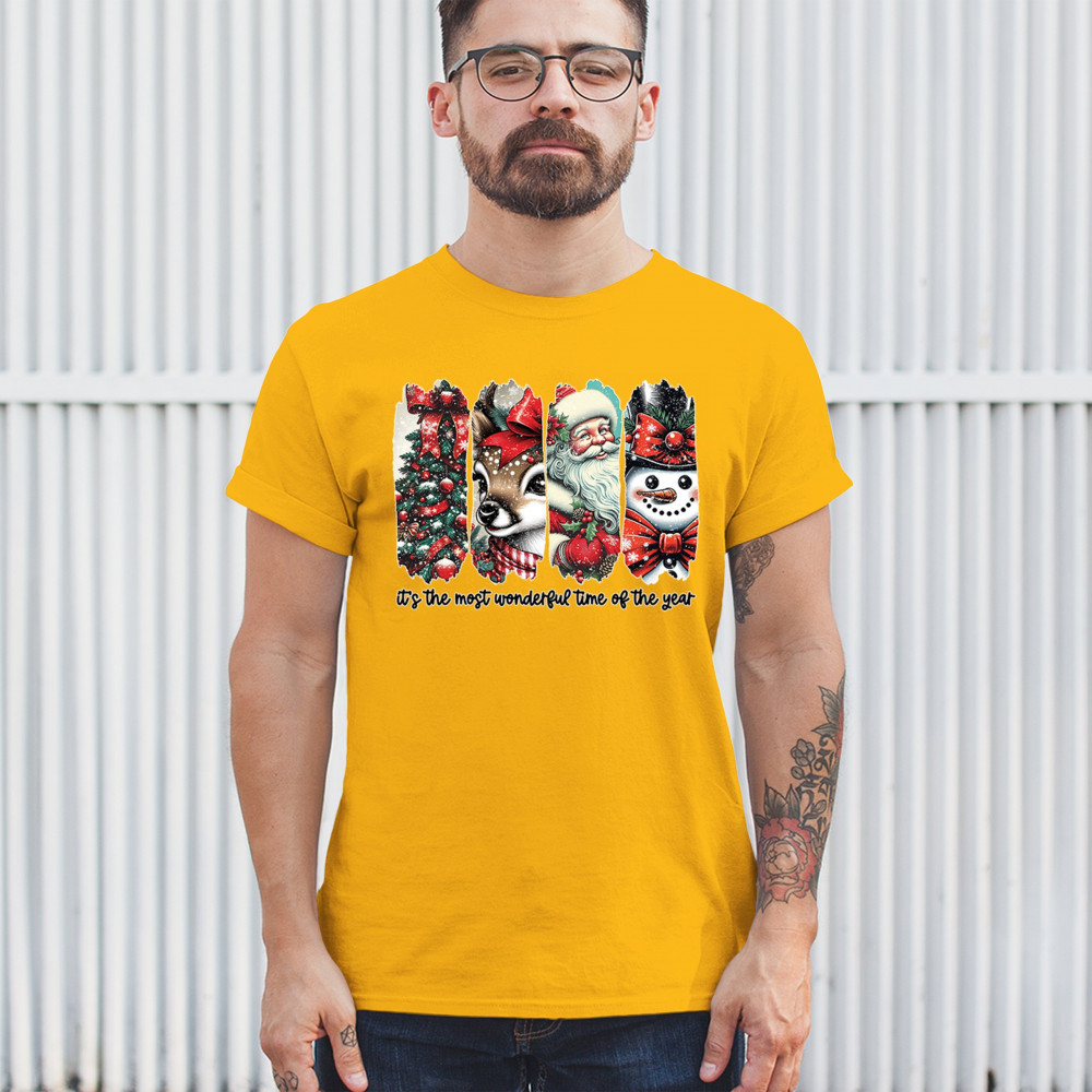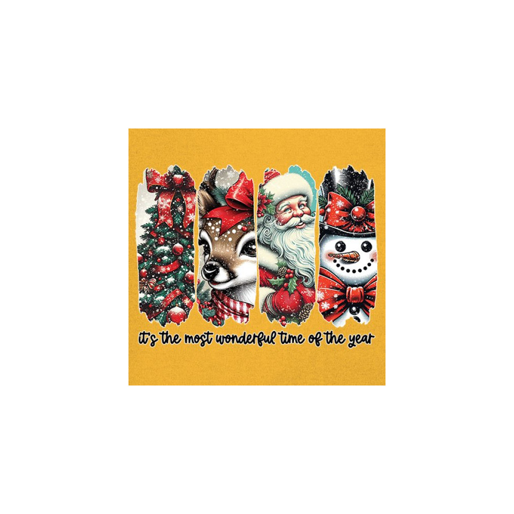This Christmas design blends a decorated tree, sweet reindeer, vintage Santa, and a bright snowman for a classic seasonal look. Ideal for holiday lovers, winter gatherings, festive parties, gift exchanges, Christmas morning, and anyone who enjoys cheerful, nostalgic holiday art. A warm, eye-catching design that brings out the magic of the season.