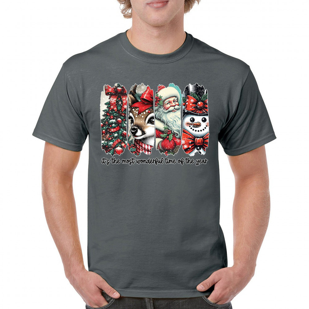 This Christmas design blends a decorated tree, sweet reindeer, vintage Santa, and a bright snowman for a classic seasonal look. Ideal for holiday lovers, winter gatherings, festive parties, gift exchanges, Christmas morning, and anyone who enjoys cheerful, nostalgic holiday art. A warm, eye-catching design that brings out the magic of the season.