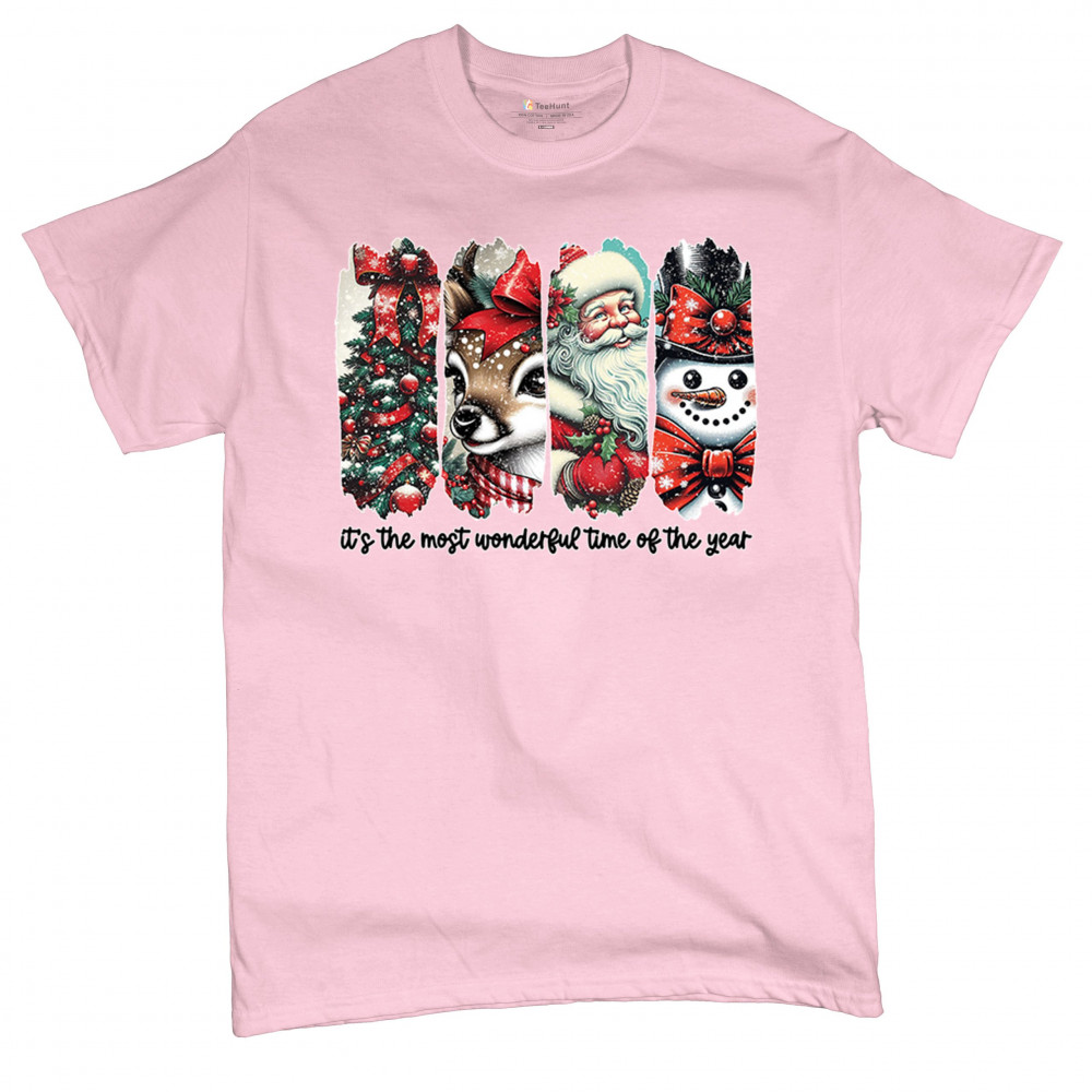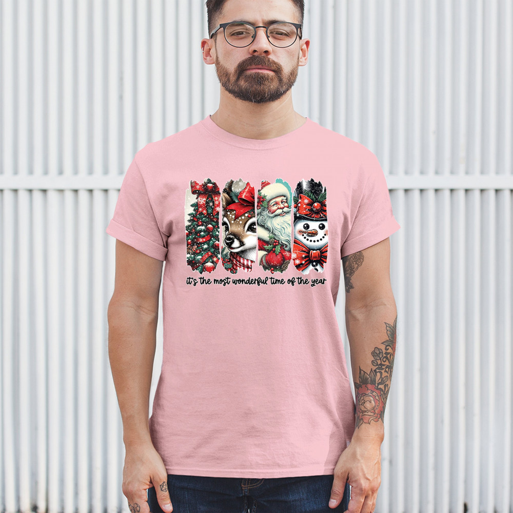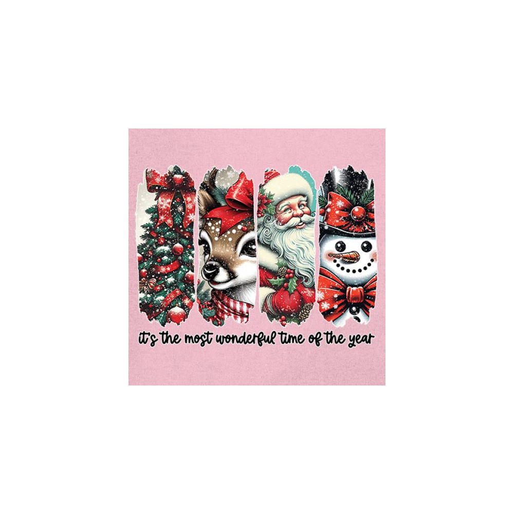 This Christmas design blends a decorated tree, sweet reindeer, vintage Santa, and a bright snowman for a classic seasonal look. Ideal for holiday lovers, winter gatherings, festive parties, gift exchanges, Christmas morning, and anyone who enjoys cheerful, nostalgic holiday art. A warm, eye-catching design that brings out the magic of the season.
