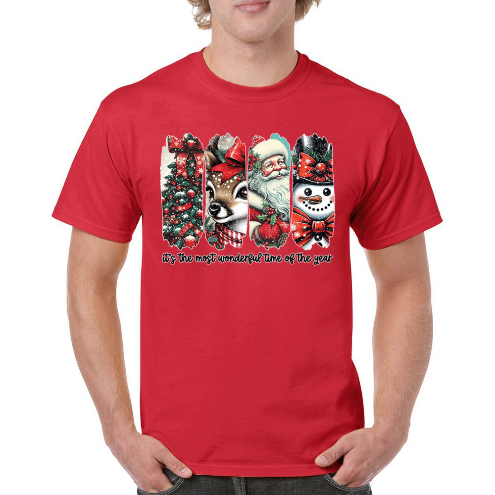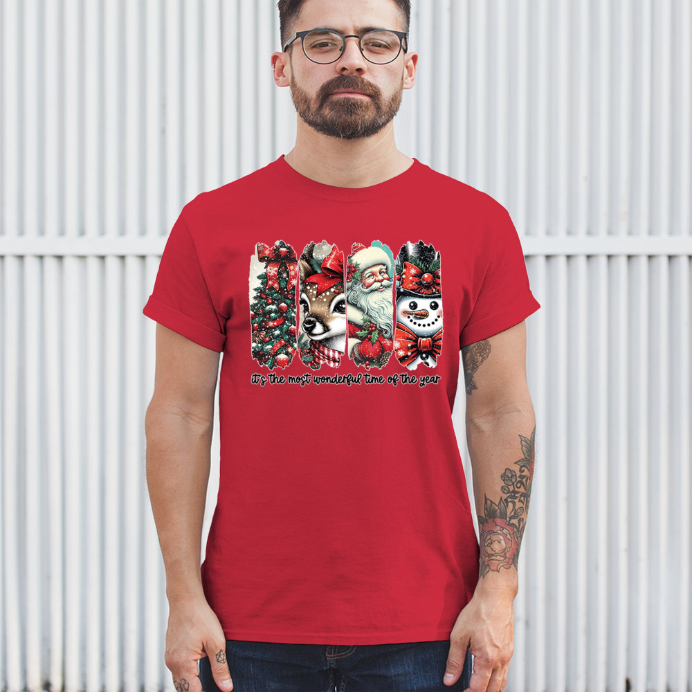 This Christmas design blends a decorated tree, sweet reindeer, vintage Santa, and a bright snowman for a classic seasonal look. Ideal for holiday lovers, winter gatherings, festive parties, gift exchanges, Christmas morning, and anyone who enjoys cheerful, nostalgic holiday art. A warm, eye-catching design that brings out the magic of the season.