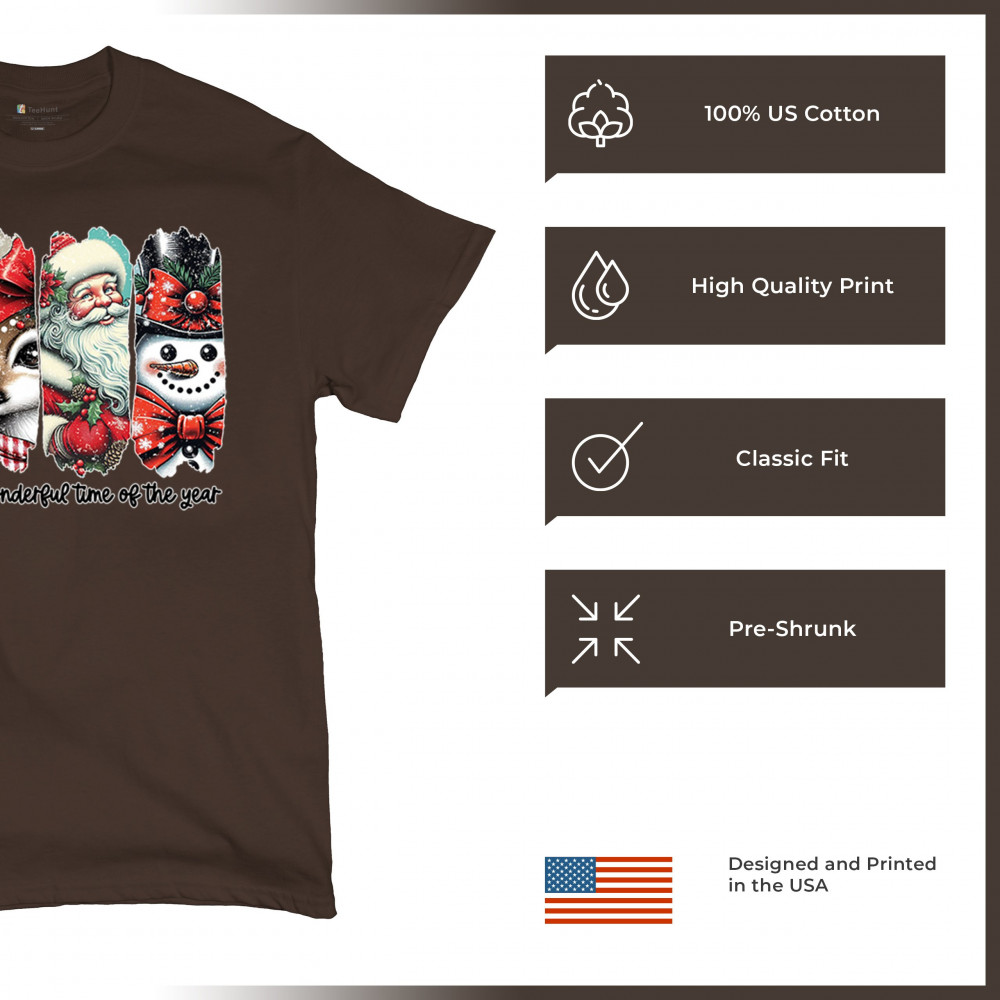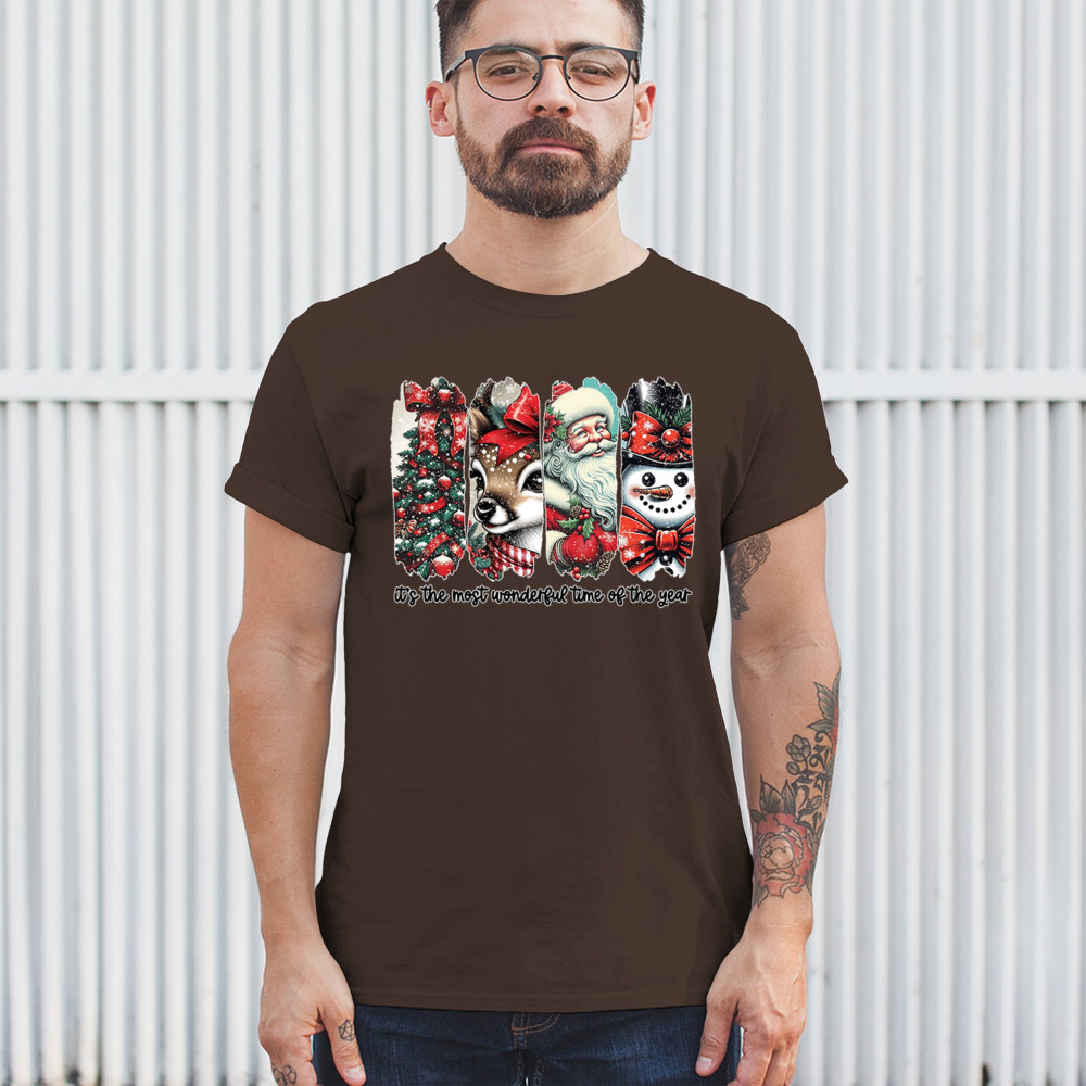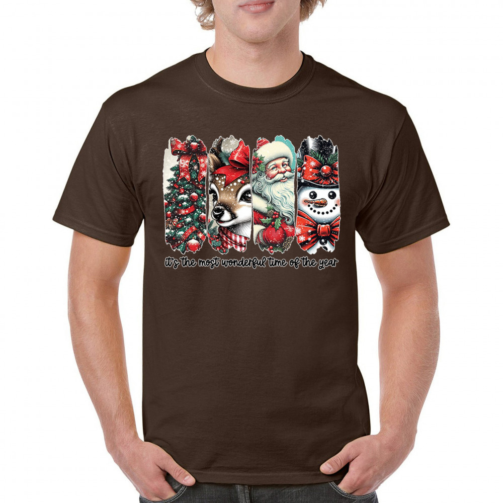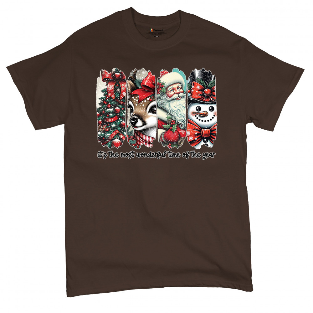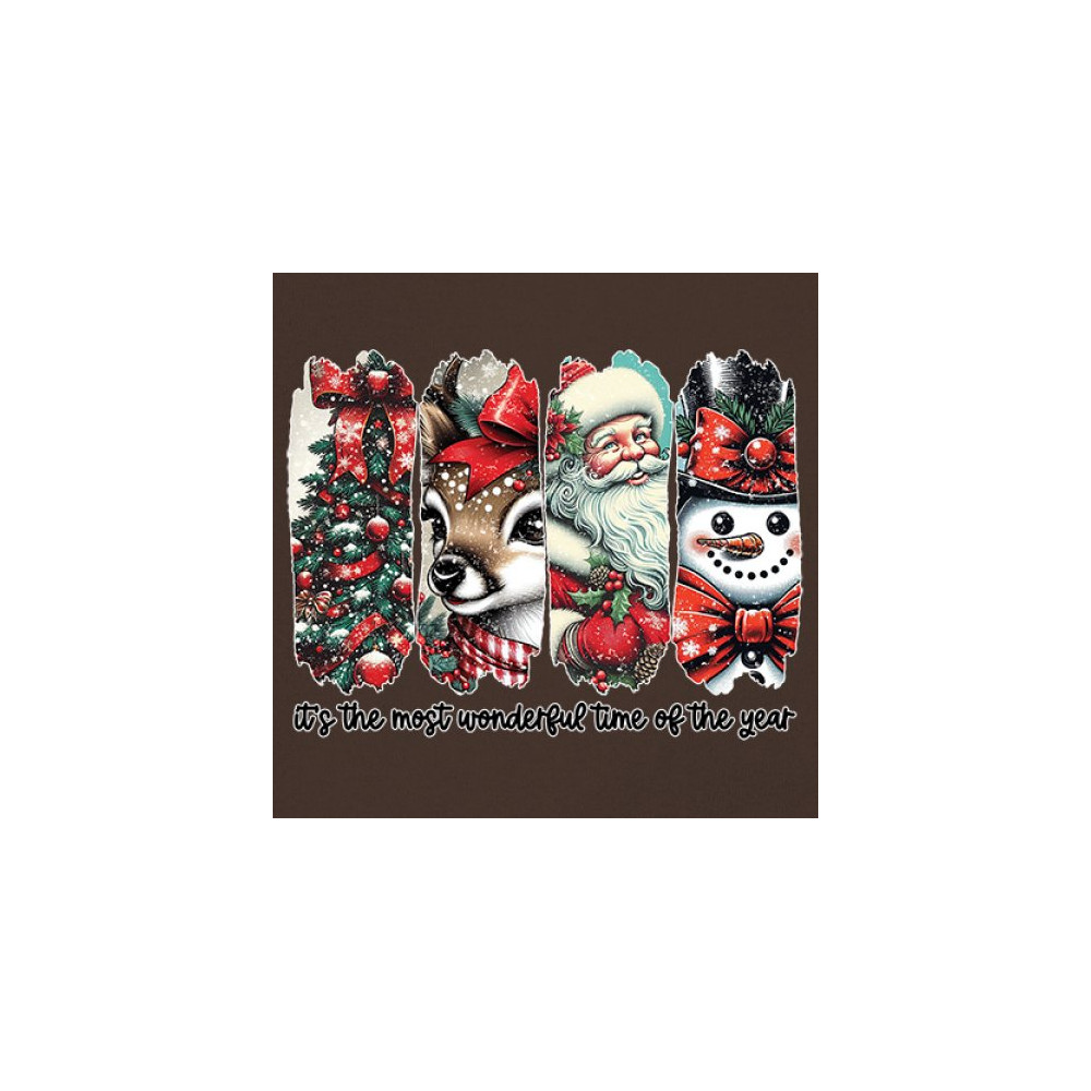 This Christmas design blends a decorated tree, sweet reindeer, vintage Santa, and a bright snowman for a classic seasonal look. Ideal for holiday lovers, winter gatherings, festive parties, gift exchanges, Christmas morning, and anyone who enjoys cheerful, nostalgic holiday art. A warm, eye-catching design that brings out the magic of the season.