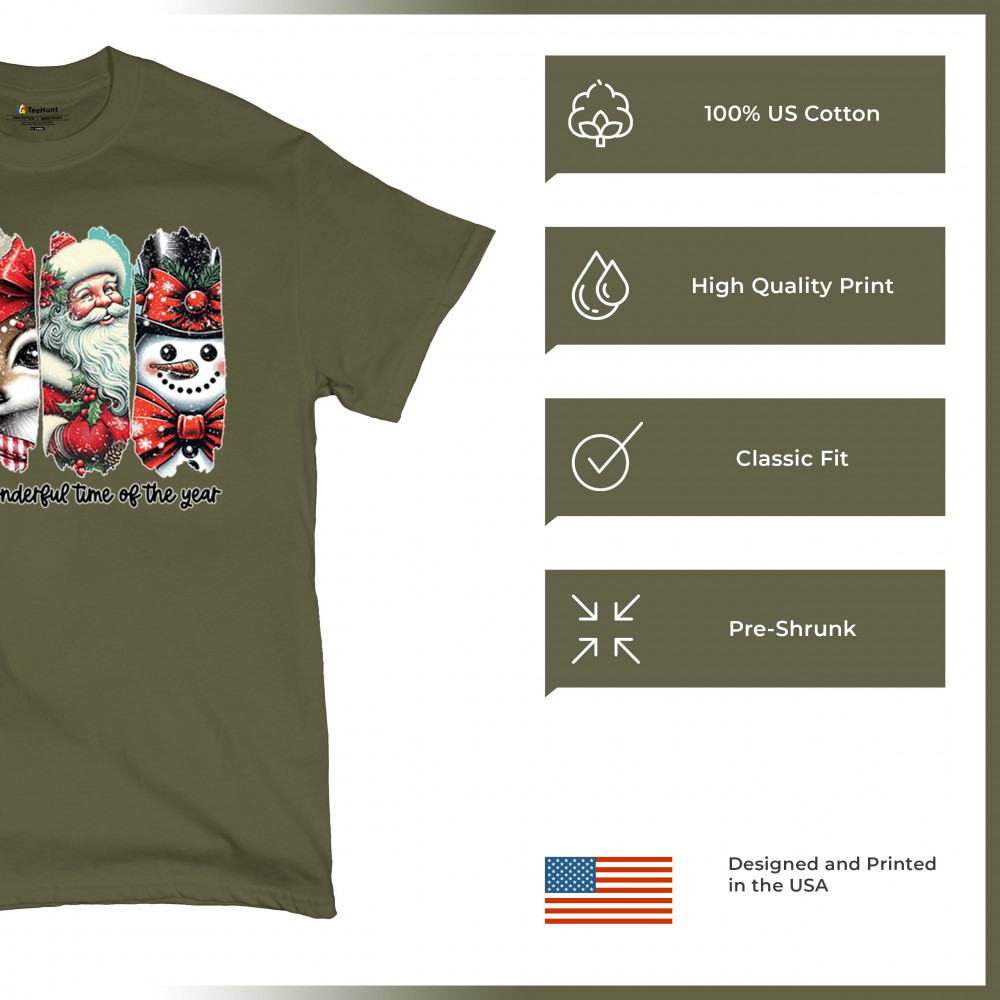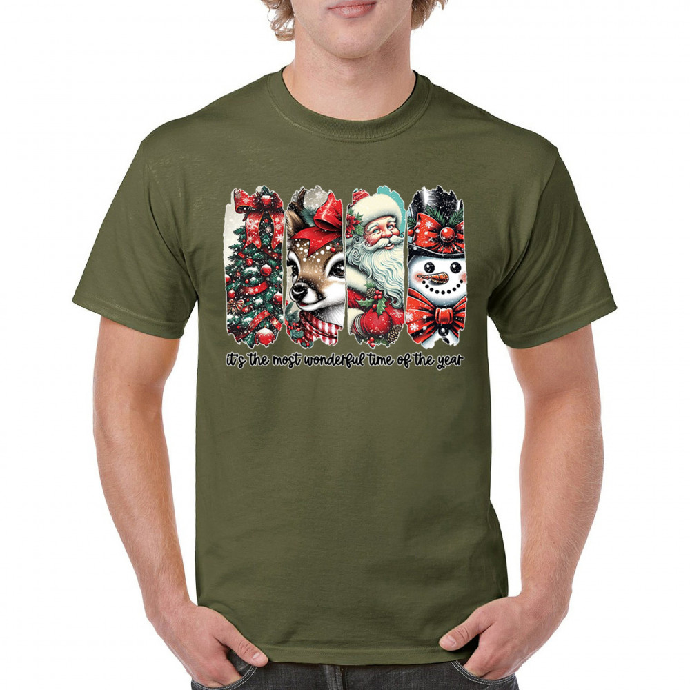This Christmas design blends a decorated tree, sweet reindeer, vintage Santa, and a bright snowman for a classic seasonal look. Ideal for holiday lovers, winter gatherings, festive parties, gift exchanges, Christmas morning, and anyone who enjoys cheerful, nostalgic holiday art. A warm, eye-catching design that brings out the magic of the season.
