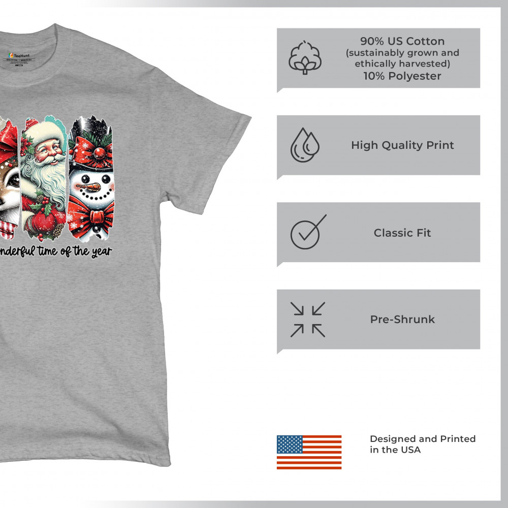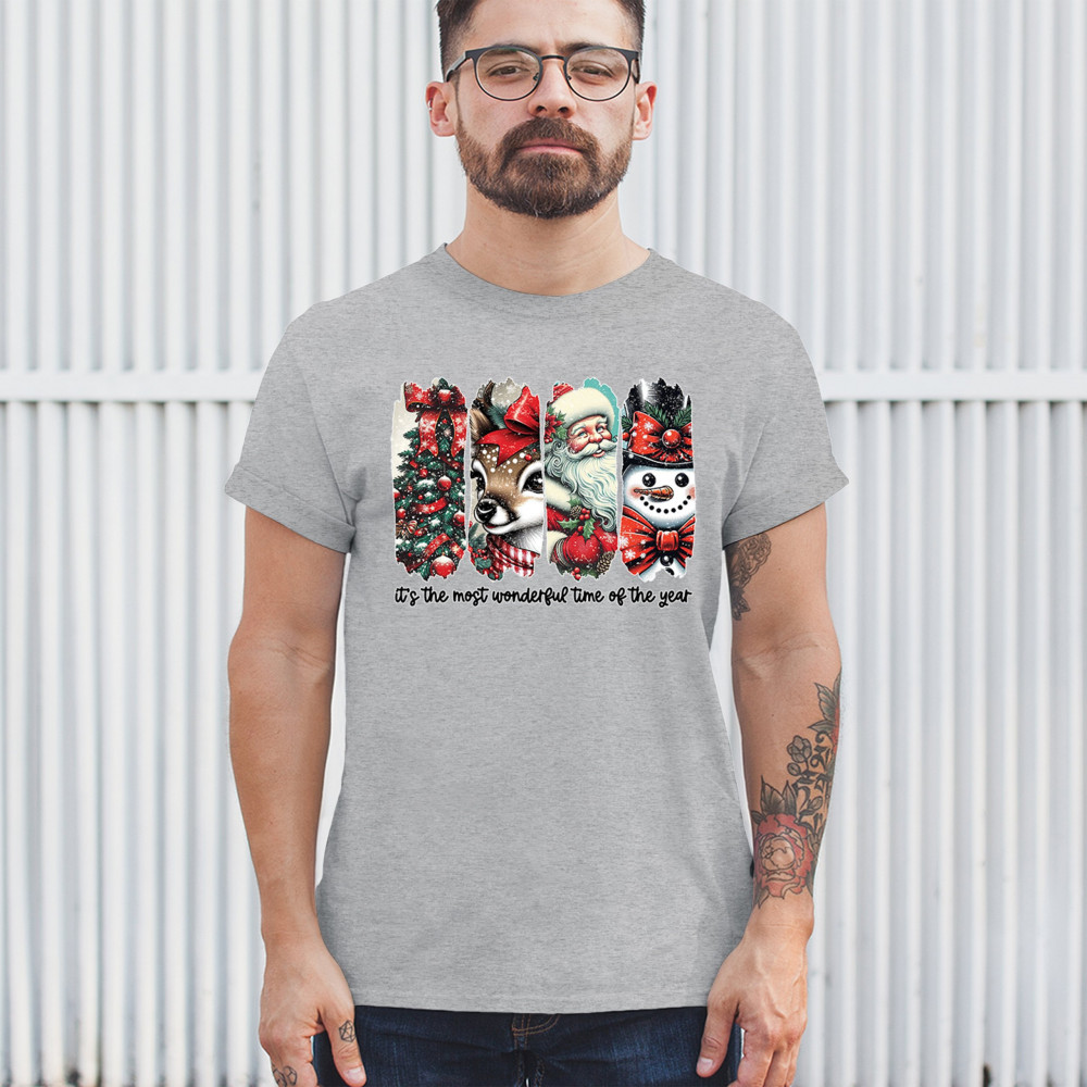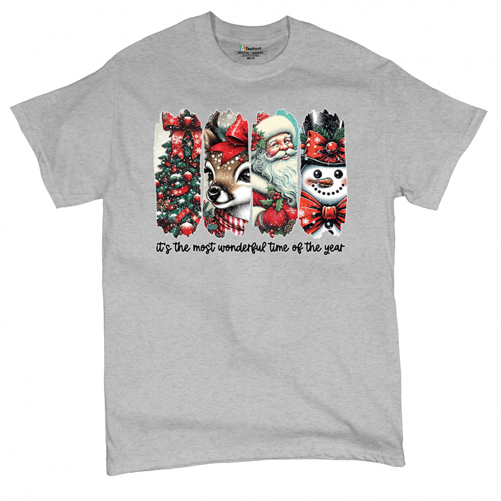 This Christmas design blends a decorated tree, sweet reindeer, vintage Santa, and a bright snowman for a classic seasonal look. Ideal for holiday lovers, winter gatherings, festive parties, gift exchanges, Christmas morning, and anyone who enjoys cheerful, nostalgic holiday art. A warm, eye-catching design that brings out the magic of the season.