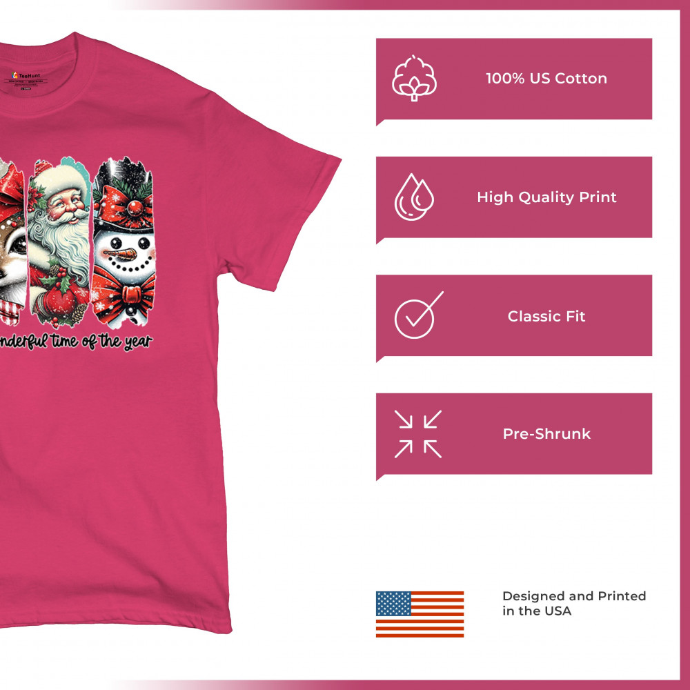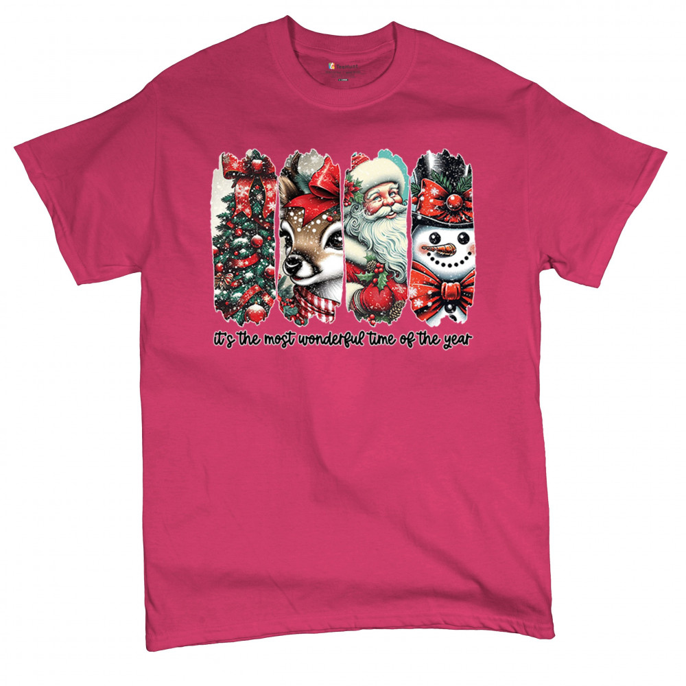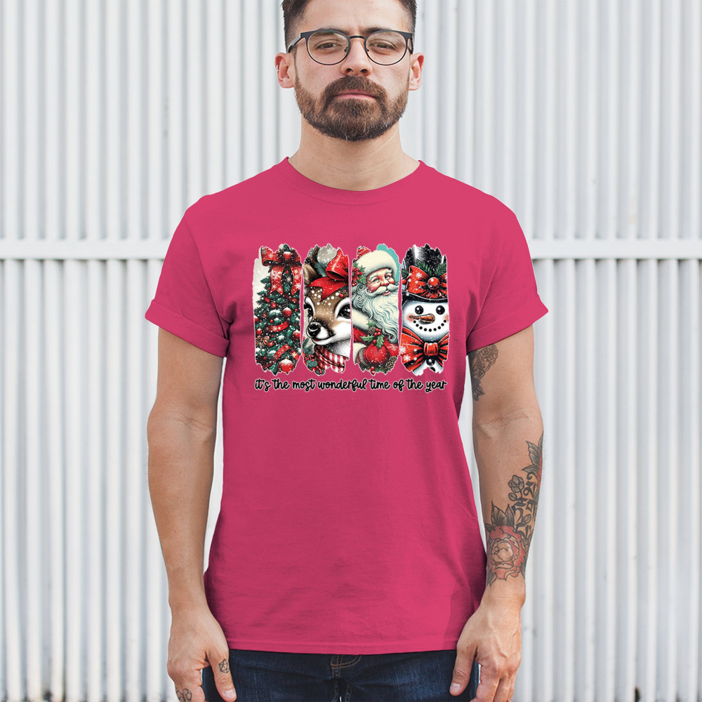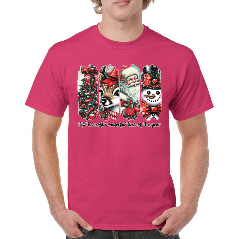 This Christmas design blends a decorated tree, sweet reindeer, vintage Santa, and a bright snowman for a classic seasonal look. Ideal for holiday lovers, winter gatherings, festive parties, gift exchanges, Christmas morning, and anyone who enjoys cheerful, nostalgic holiday art. A warm, eye-catching design that brings out the magic of the season.