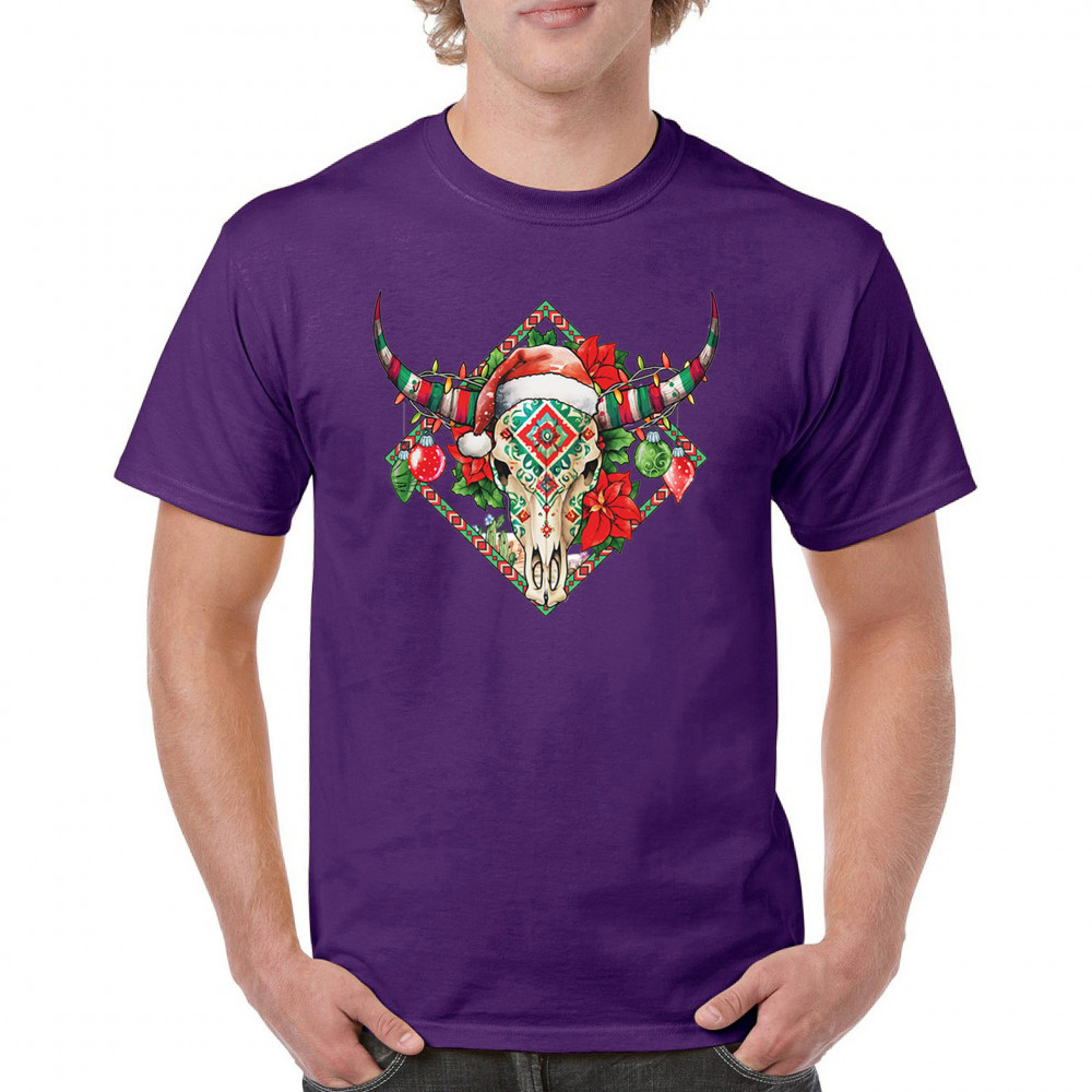 Blend Southwestern charm with holiday cheer! This vibrant skull design with poinsettias and ornaments is perfect for festive parties and unique gifts!