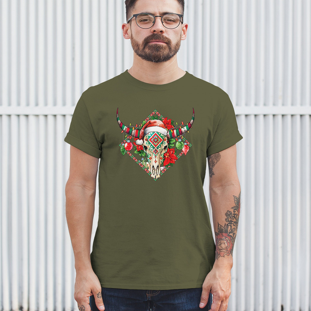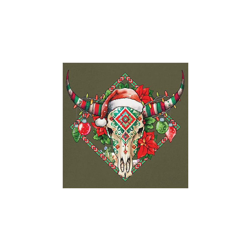 Blend Southwestern charm with holiday cheer! This vibrant skull design with poinsettias and ornaments is perfect for festive parties and unique gifts!