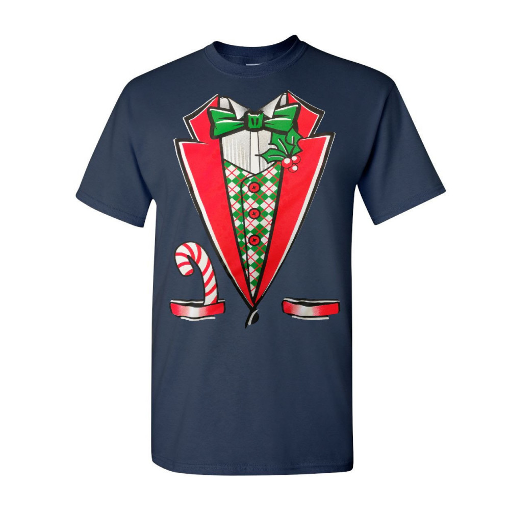 CHRISTMAS TUXEDO t-shirt funny xmas santa elf tee shirt navy blue