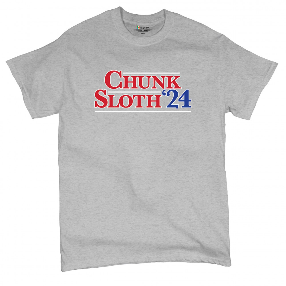 Celebrate 80s nostalgia and political humor with our Chunk and Sloth '24 design. Perfect for casual wear, movie nights, and themed parties. Durable and stylish.