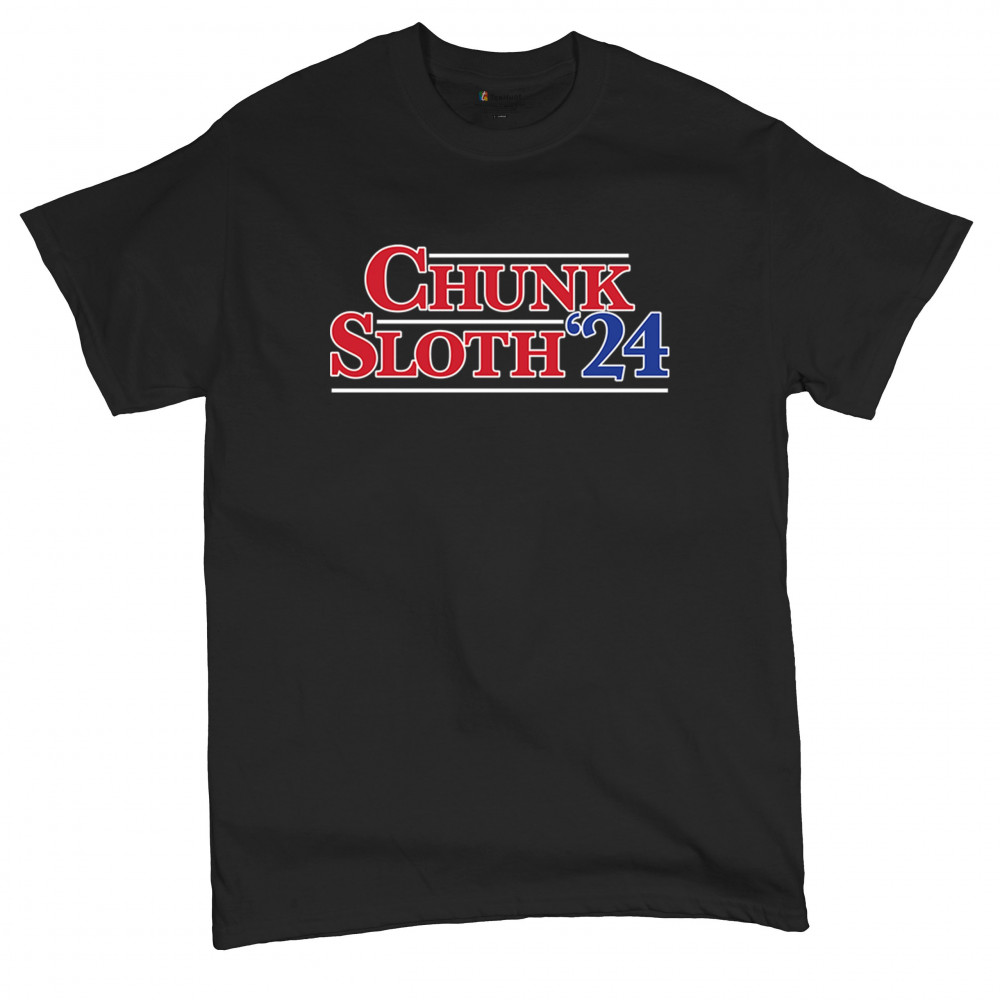 Celebrate 80s nostalgia and political humor with our Chunk and Sloth '24 design. Perfect for casual wear, movie nights, and themed parties. Durable and stylish.