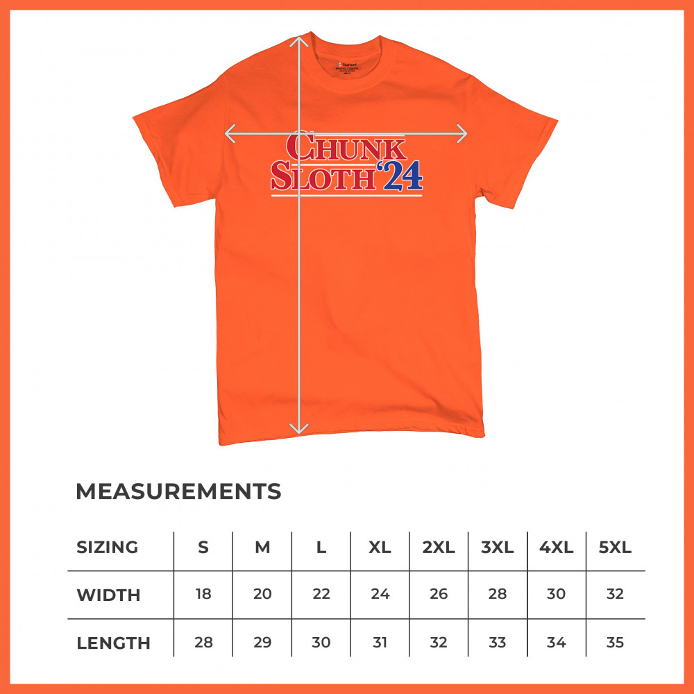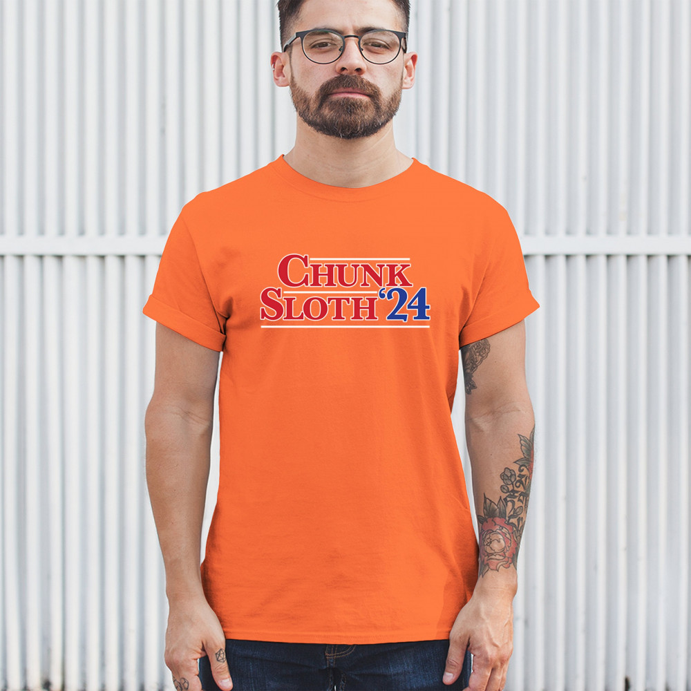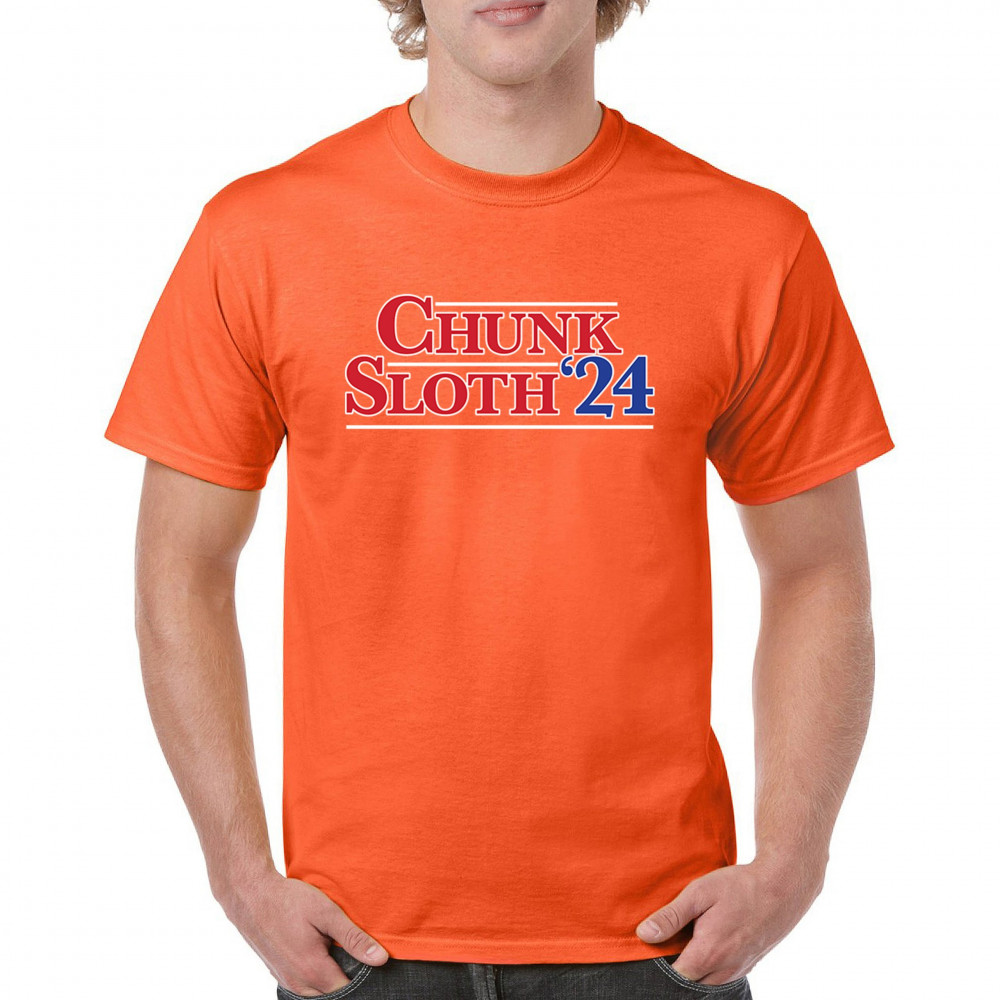Celebrate 80s nostalgia and political humor with our Chunk and Sloth '24 design. Perfect for casual wear, movie nights, and themed parties. Durable and stylish.