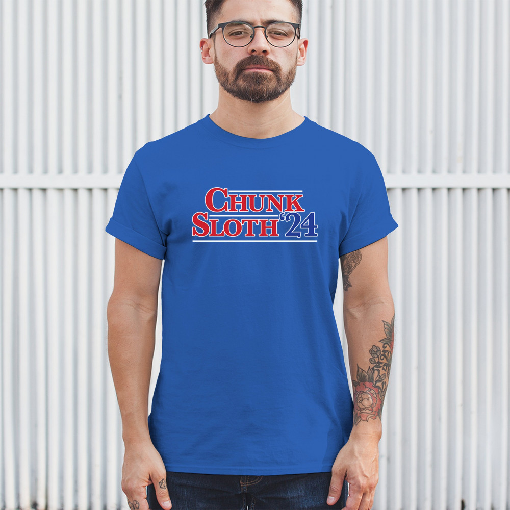 Celebrate 80s nostalgia and political humor with our Chunk and Sloth '24 design. Perfect for casual wear, movie nights, and themed parties. Durable and stylish.