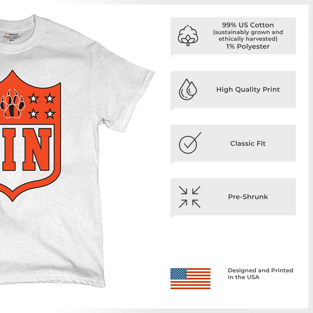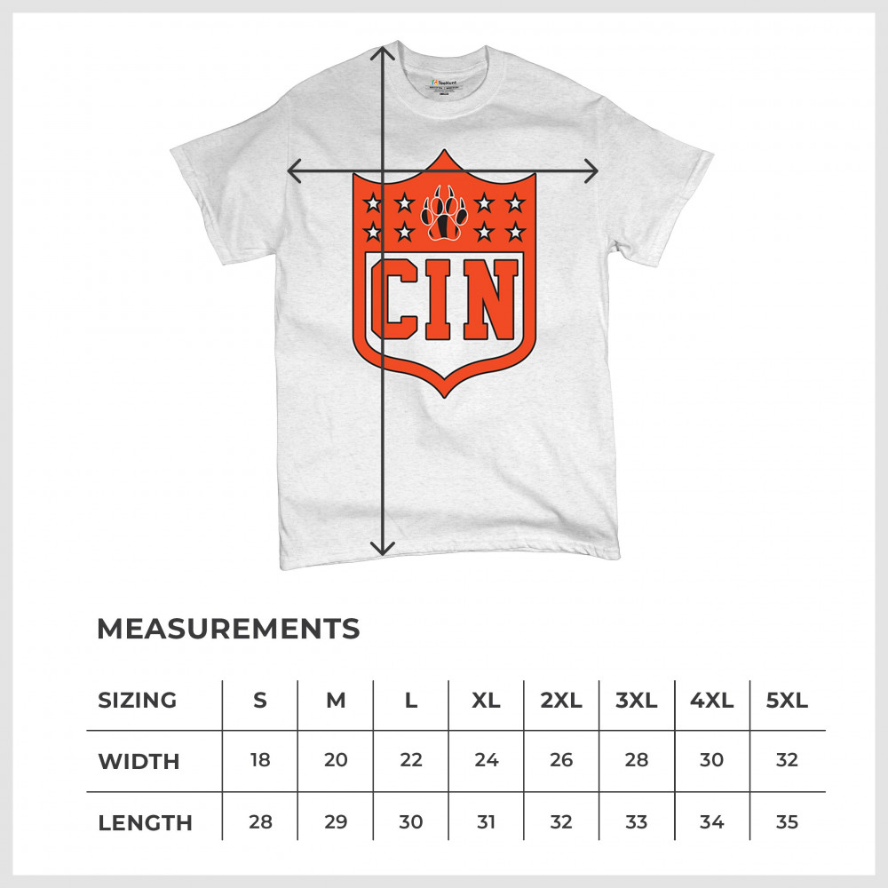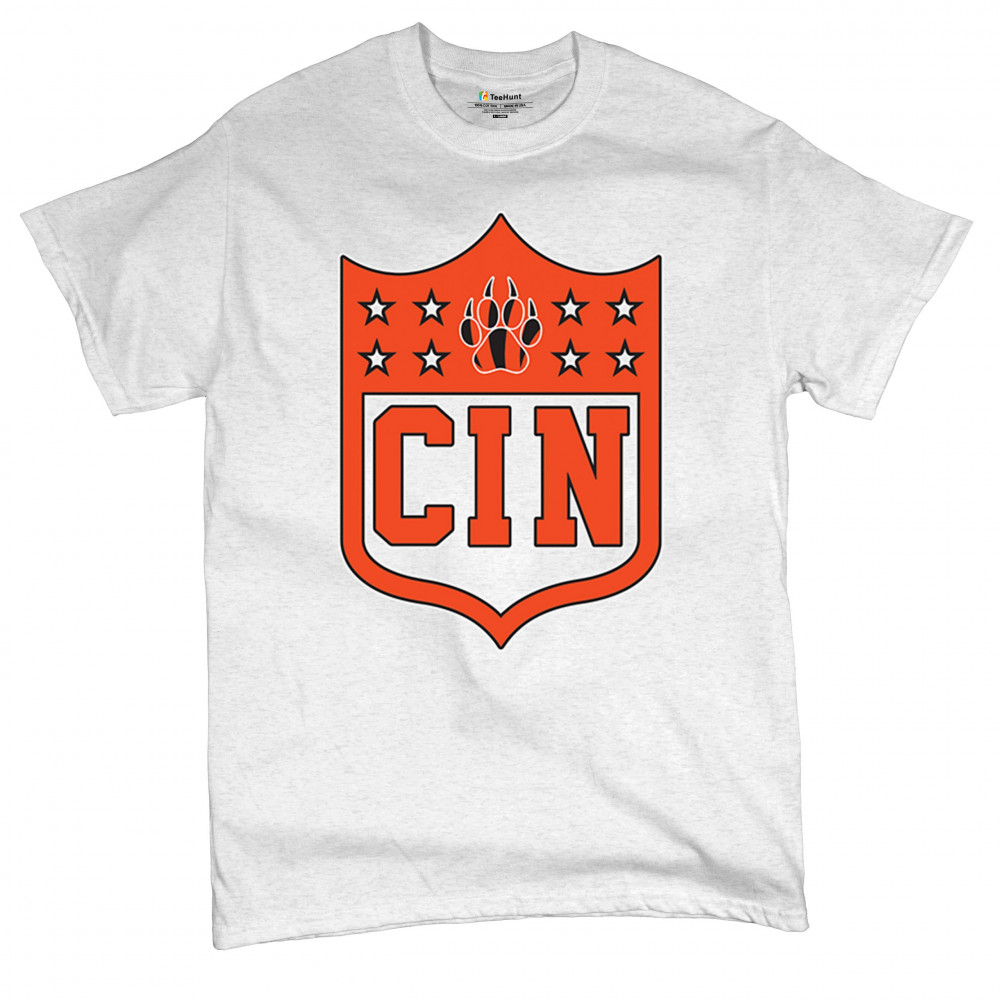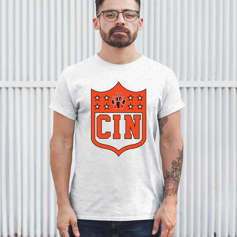 Bold CIN paw shield for Cincinnati football fans. Retro crest style, underdog spirit, and vintage game day gear for true Cincinnati grit.