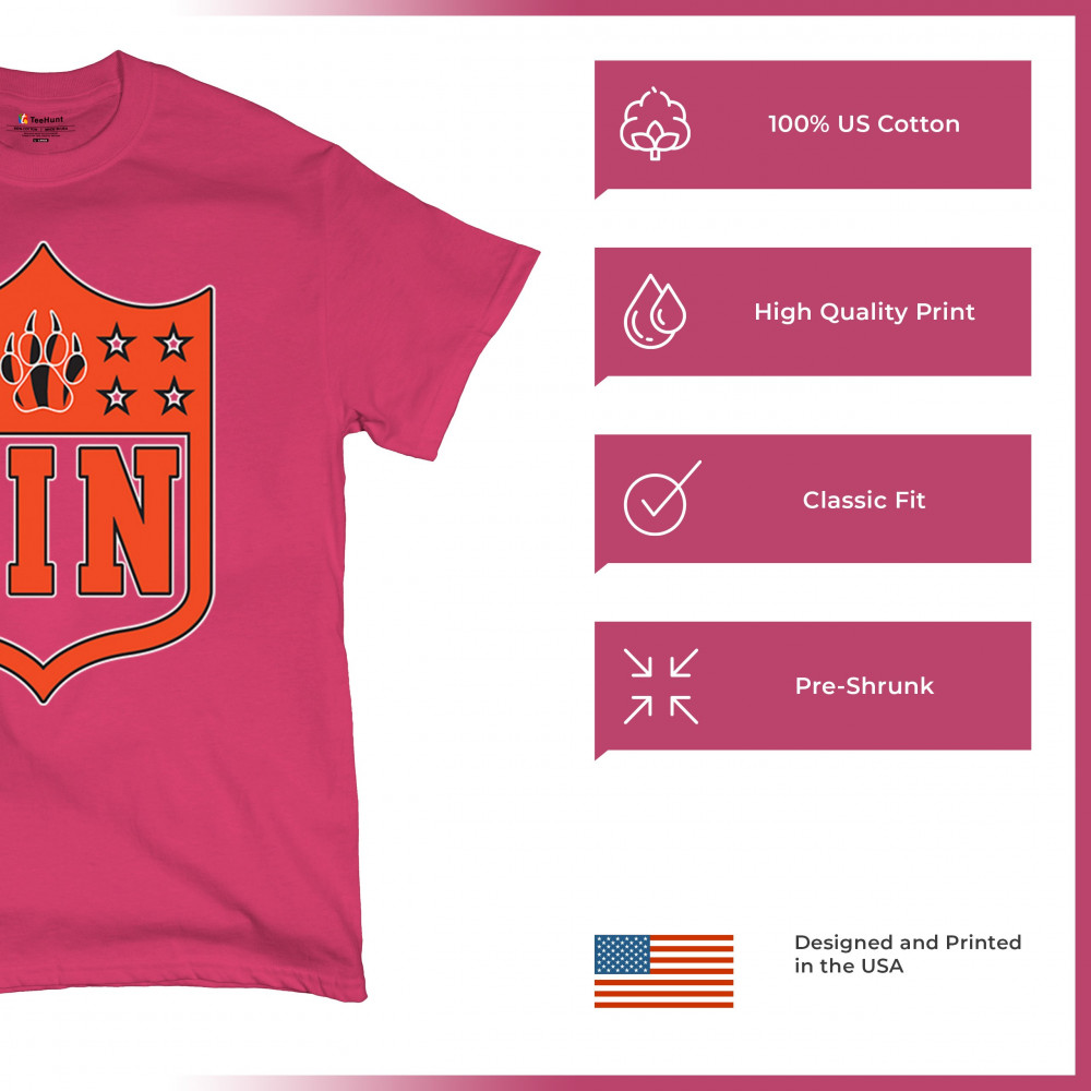 Bold CIN paw shield for Cincinnati football fans. Retro crest style, underdog spirit, and vintage game day gear for true Cincinnati grit.