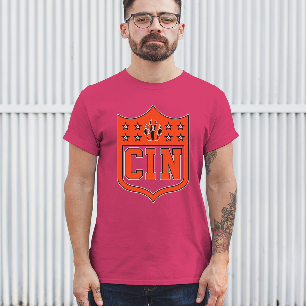 Celebrate your love for Cincinnati football with this CIN shield paw design, blending retro football crest style with vintage football culture. Perfect for Cincinnati sports culture, Cincinnati champions, and Cincinnati football nation, this design embodies underdog spirit, Cincinnati grit, and college football culture. A bold look for Saturday football vibes, Sunday football, and every big game.