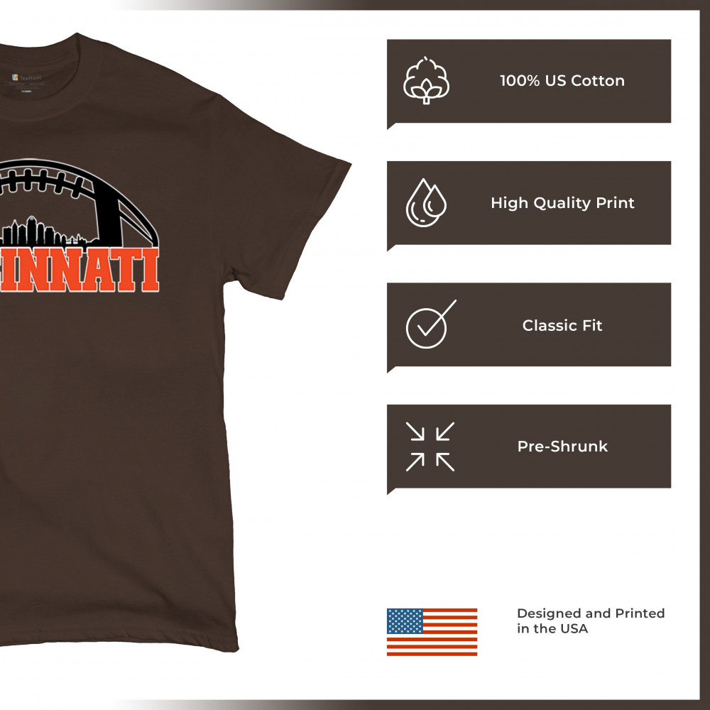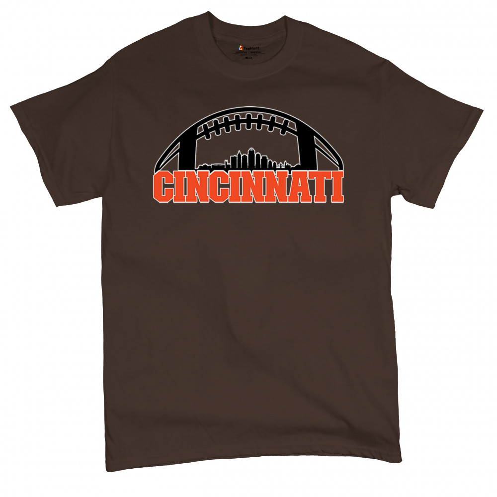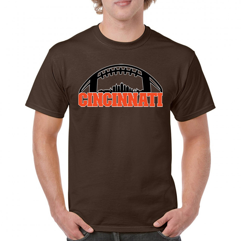 Celebrate Cincinnati and football with this bold skyline design under a football arch. Perfect for fans, tailgates, and game days!