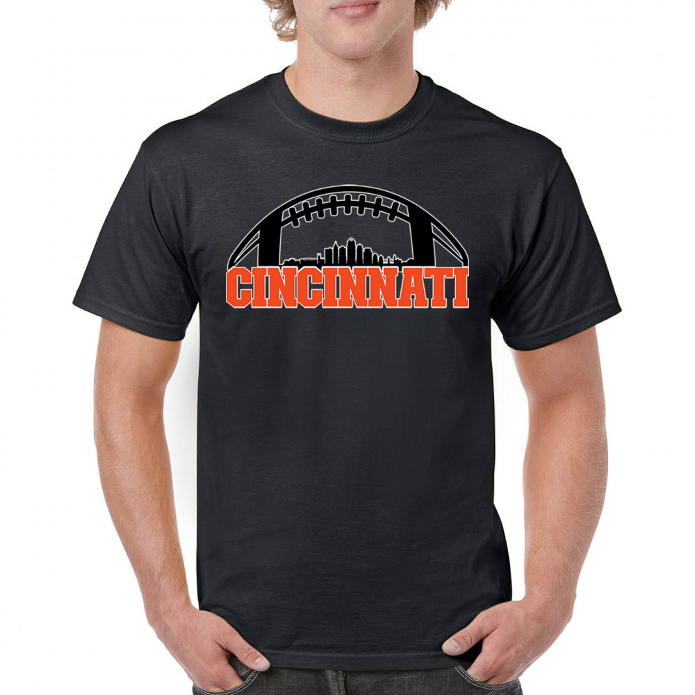 CINCINNATI SKYLINE FOOTBALL t-shirt bleed orange and black game day men's tee black