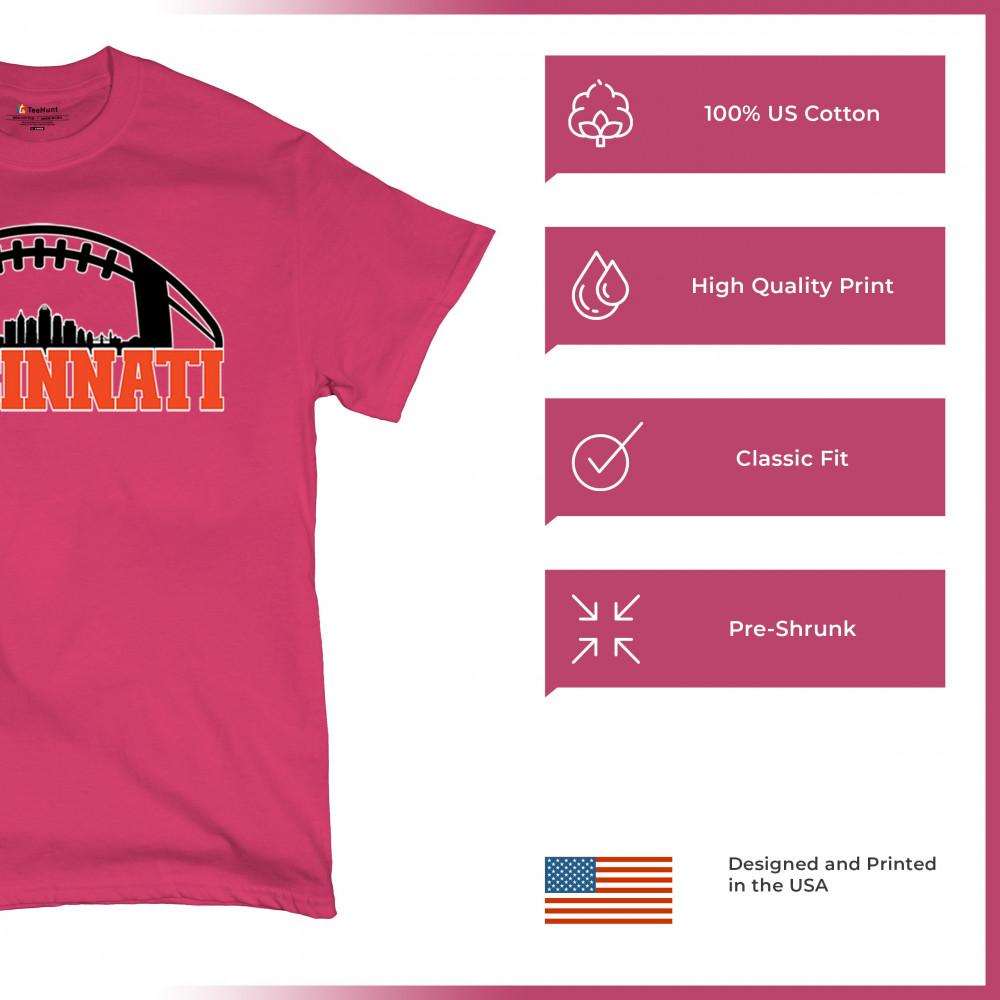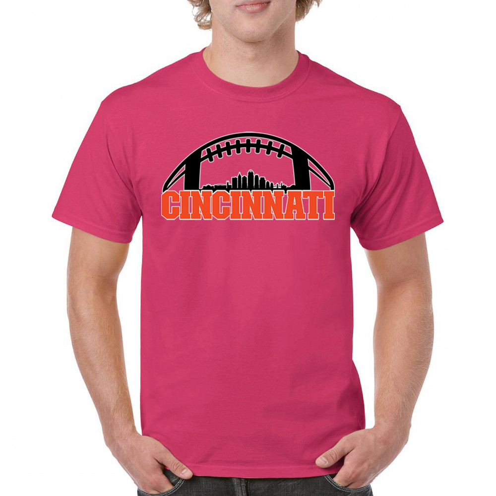 Celebrate Cincinnati and football with this bold skyline design under a football arch. Perfect for fans, tailgates, and game days!