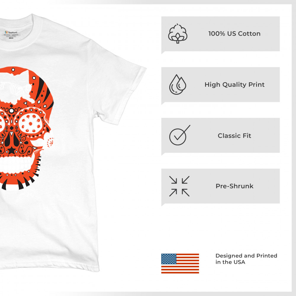Celebrate Cincinnati football with this Sugar Skull design featuring the Queen City Paw. With underdog grit, black & orange pride, and Saturday football culture, it’s made for Game Day excitement, playoff energy, and fantasy league rivalries. A bold calavera for passionate Cincinnati fans.