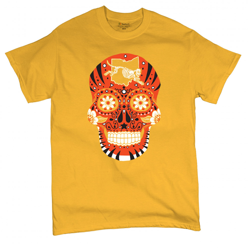 Celebrate Cincinnati football with this Sugar Skull design featuring the Queen City Paw. With underdog grit, black & orange pride, and Saturday football culture, it’s made for Game Day excitement, playoff energy, and fantasy league rivalries. A bold calavera for passionate Cincinnati fans.