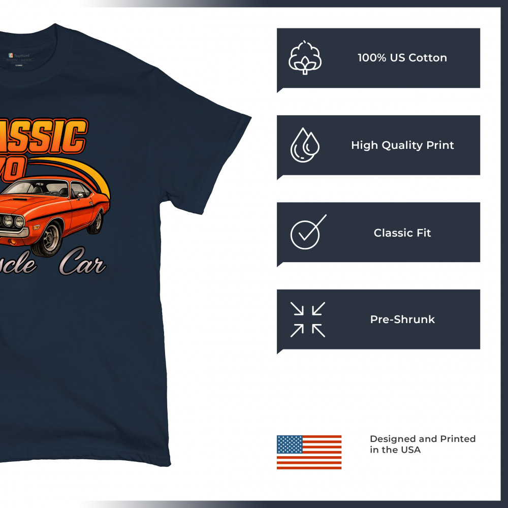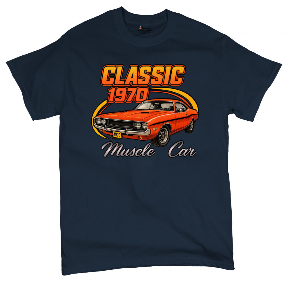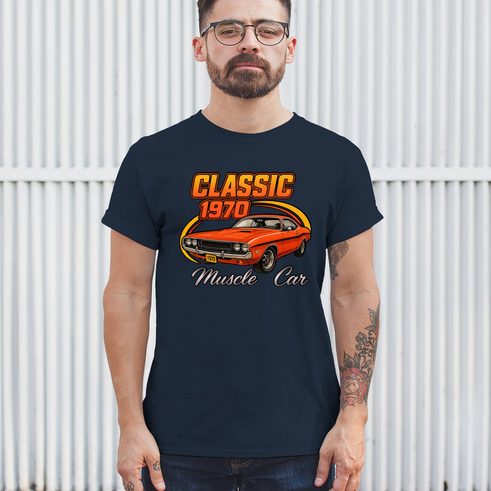 Show your pride for American muscle with this bold 1970 design featuring a classic orange coupe in retro detail. Perfect for gearheads, vintage car lovers, and collectors who live for the sound of old-school performance. A tribute to the raw attitude and street dominance of 1970 muscle.