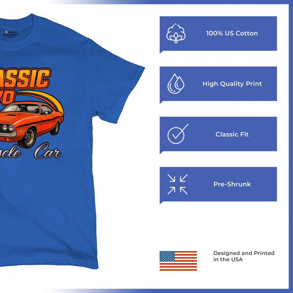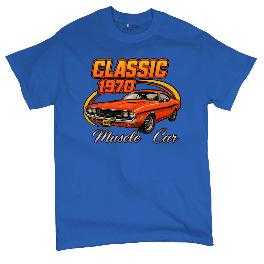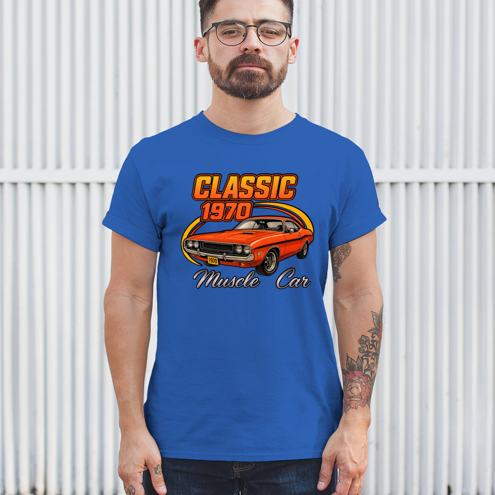 Show your pride for American muscle with this bold 1970 design featuring a classic orange coupe in retro detail. Perfect for gearheads, vintage car lovers, and collectors who live for the sound of old-school performance. A tribute to the raw attitude and street dominance of 1970 muscle.