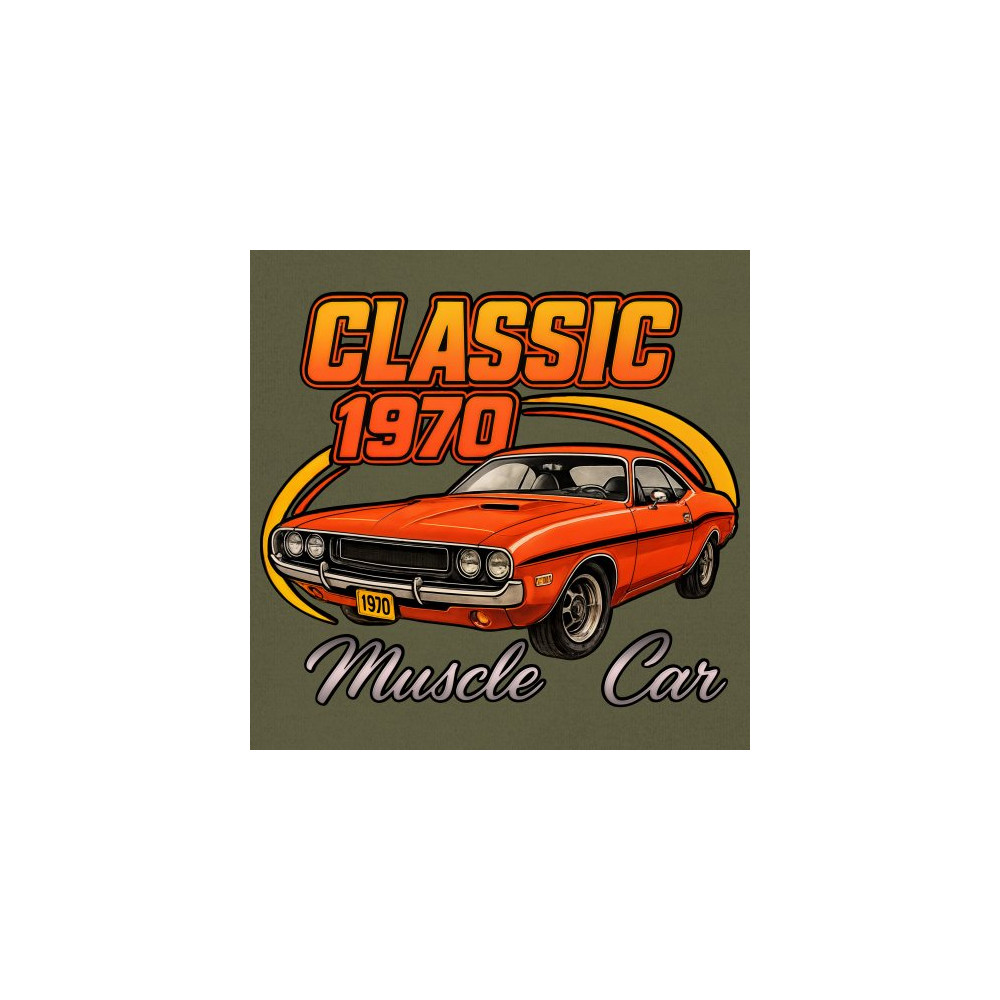 Show your pride for American muscle with this bold 1970 design featuring a classic orange coupe in retro detail. Perfect for gearheads, vintage car lovers, and collectors who live for the sound of old-school performance. A tribute to the raw attitude and street dominance of 1970 muscle.