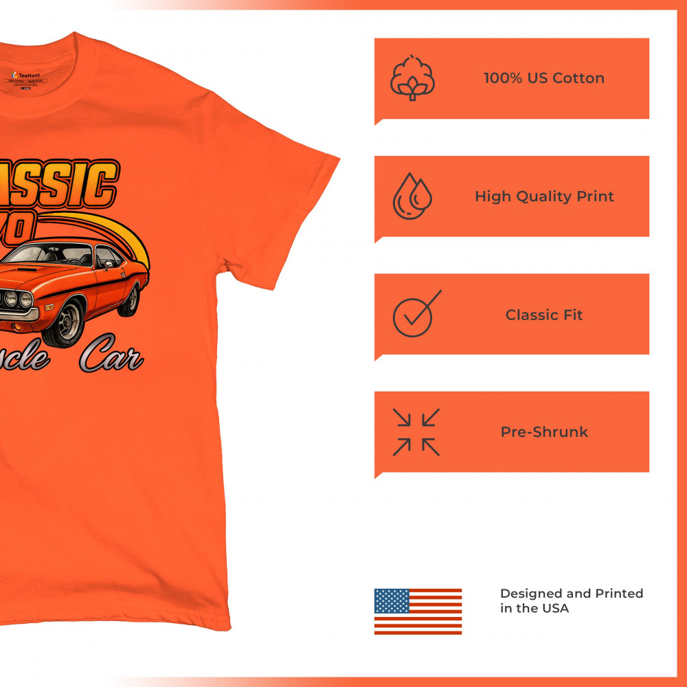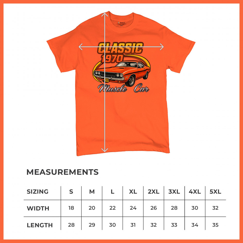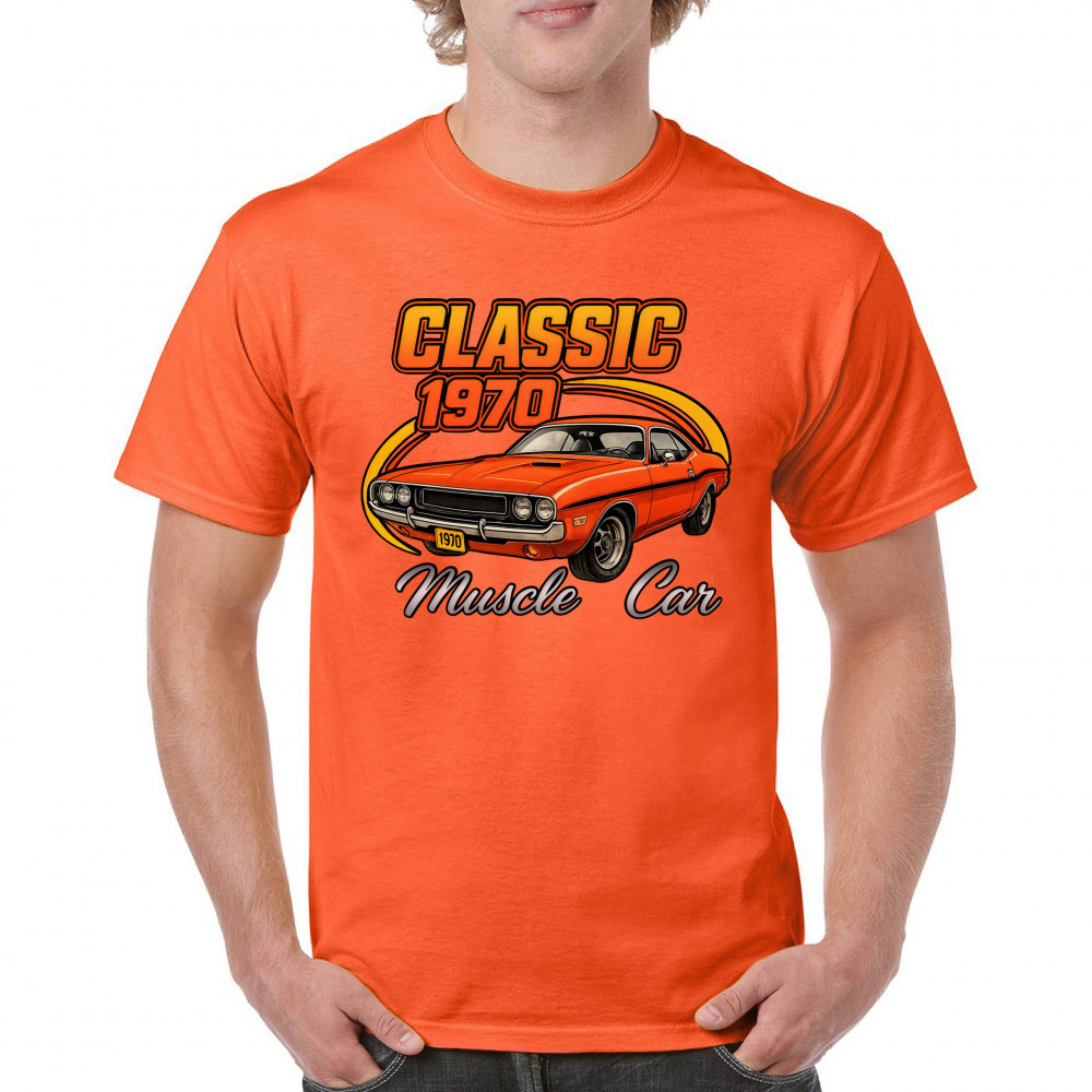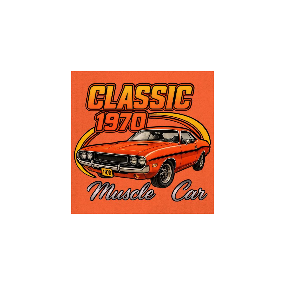Show your pride for American muscle with this bold 1970 design featuring a classic orange coupe in retro detail. Perfect for gearheads, vintage car lovers, and collectors who live for the sound of old-school performance. A tribute to the raw attitude and street dominance of 1970 muscle.