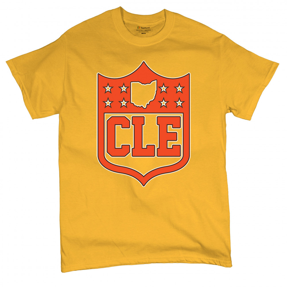 Bold CLE shield design honoring Cleveland football nation with Rust Belt pride, underdog grit, and blue collar sports heritage.
