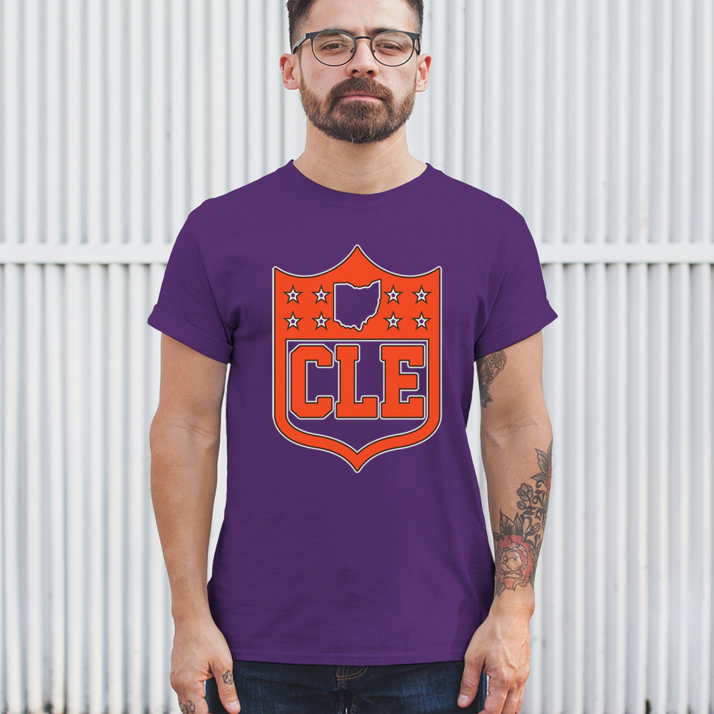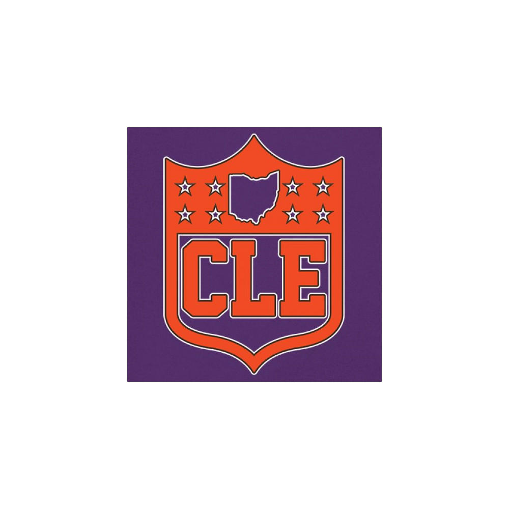 Bold CLE shield design honoring Cleveland football nation with Rust Belt pride, underdog grit, and blue collar sports heritage.