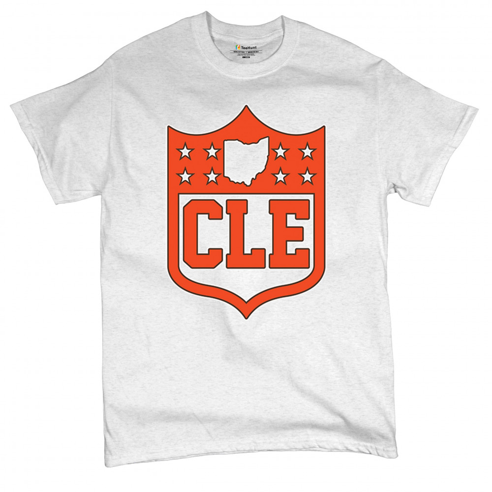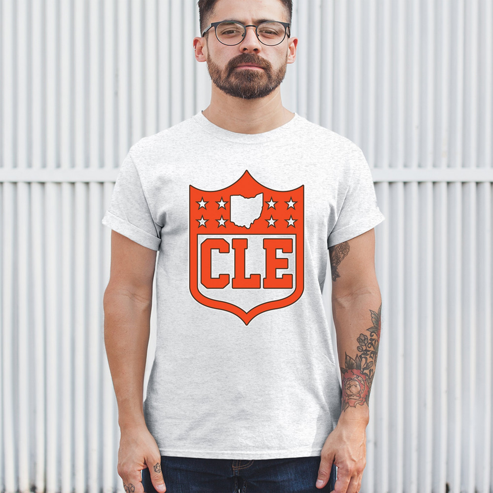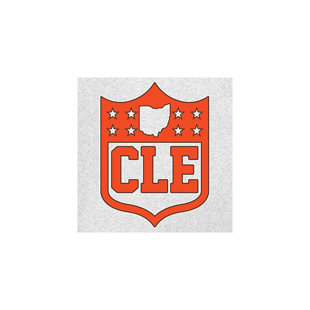 Bold CLE shield design honoring Cleveland football nation with Rust Belt pride, underdog grit, and blue collar sports heritage.